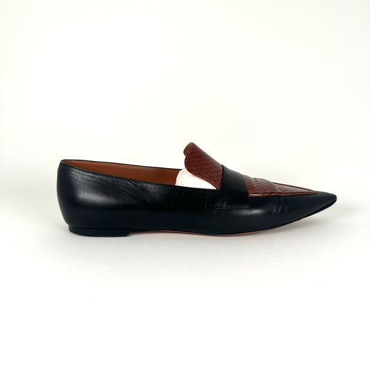 Celine Snakeskin Black Flat Loafers Size 40