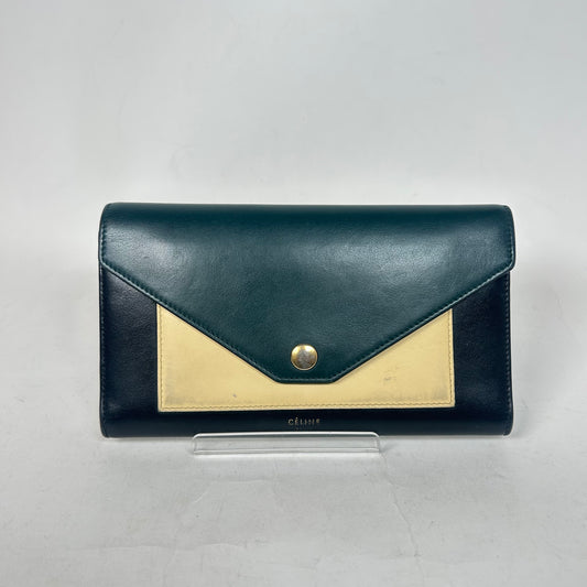 Celine Black/Green Calfskin Envelope Wallet