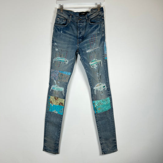 Amiri Dark Blue MA Paisley Skinny Jeans Size 38