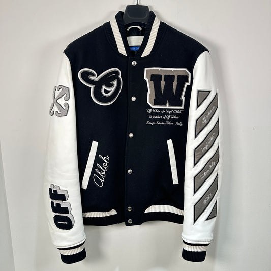 Off-White Cream Sateen College Souvenir Jacket Size L