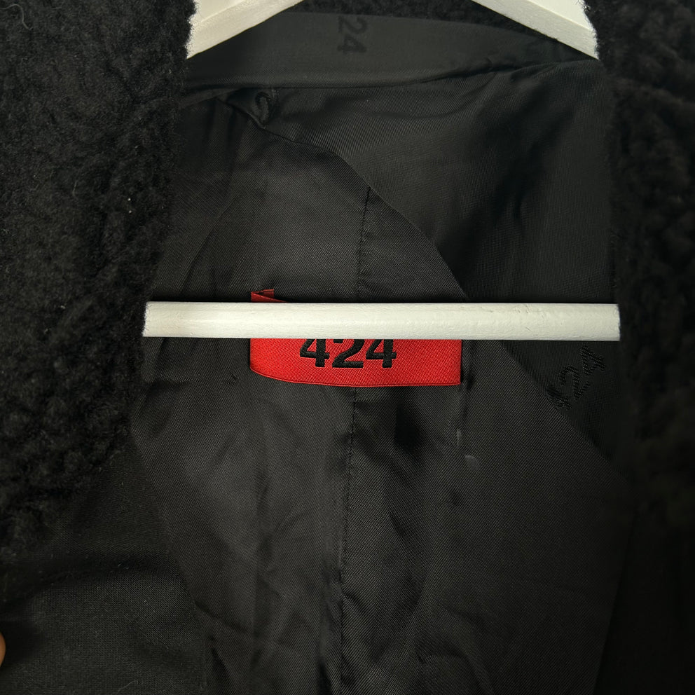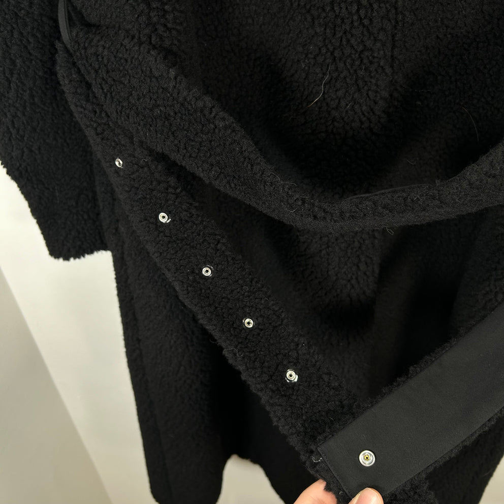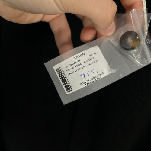 424 Black Wool Zip-Up Trech-Coat Size 48