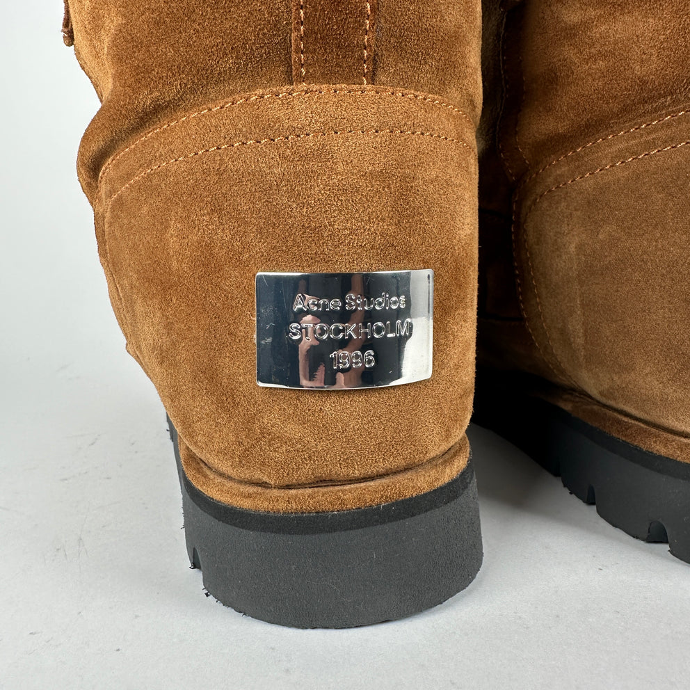 Acne Studios Brown Shearling Leather Cargo Boot Size 42