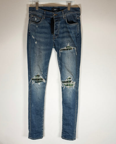 Amiri Mx1 Green Plaid Distressed Skinny Jeans Size 31