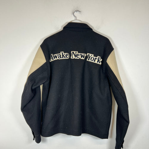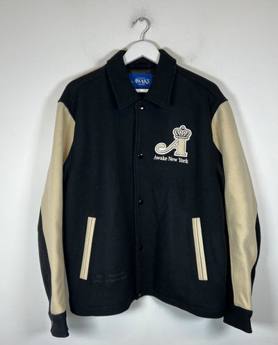 Awake NY Black Crown Paneled Varsity Jacket Size L