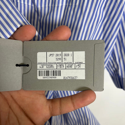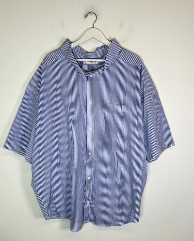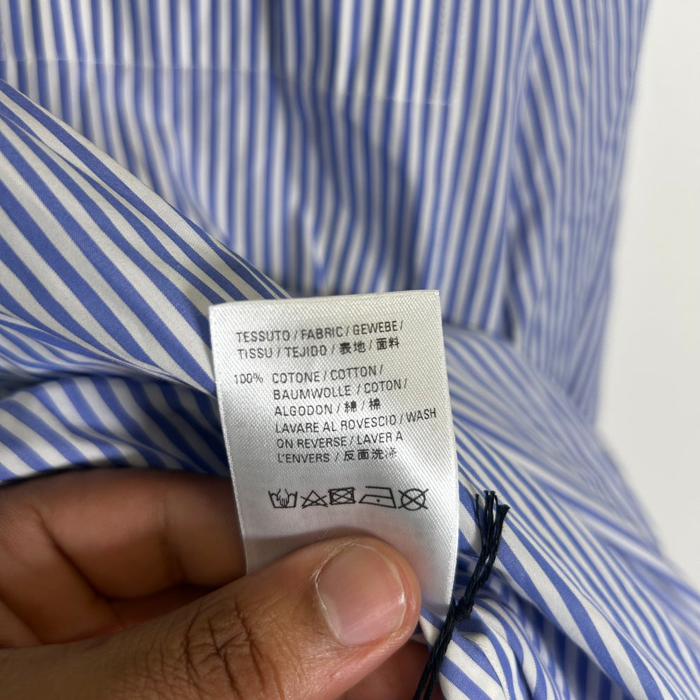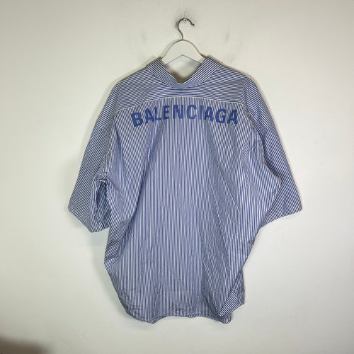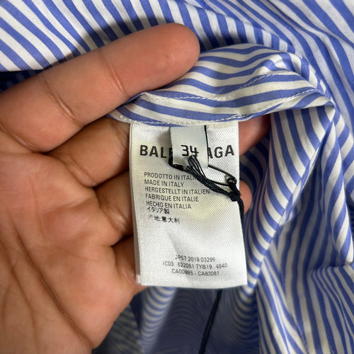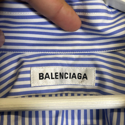 Balenciaga Blue Striped Back Logo Button-Up Shirt Size XL