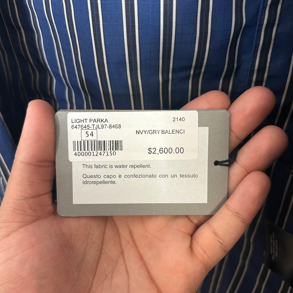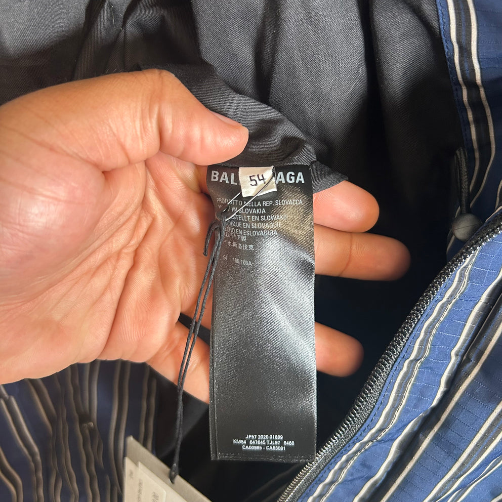 Balenciaga Navy Striped Padded Light Parka Size 54