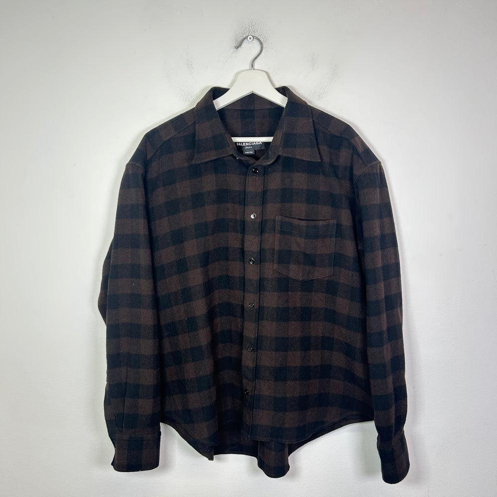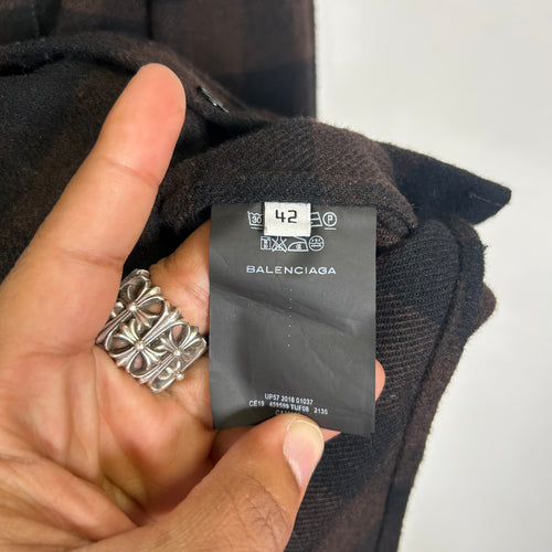 Balenciaga Paris Black/Brown Plaid Flannel Size 42