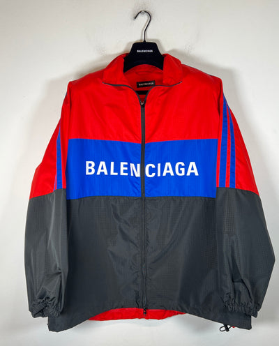 Balenciaga Red/Blue Technical Ripstop Logo Jacket Size 1