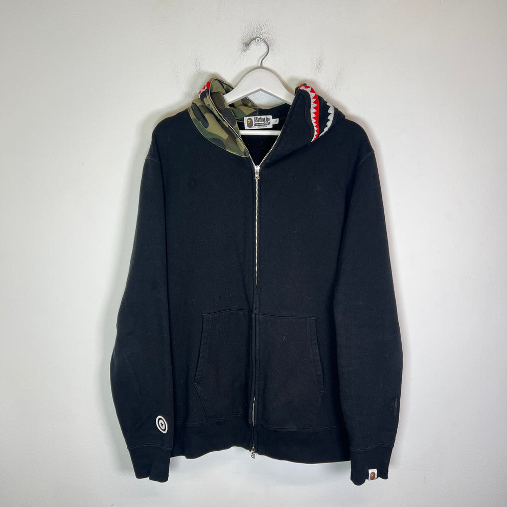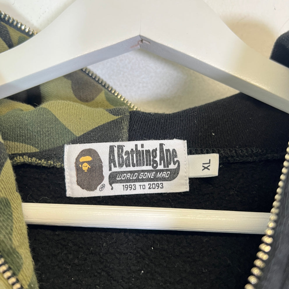 Bape Black ABC Camo Shark Head Full-Zip Hoodie Size XL
