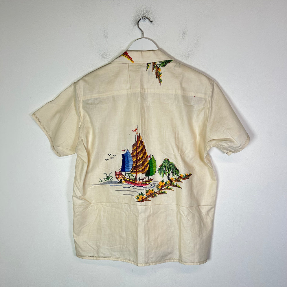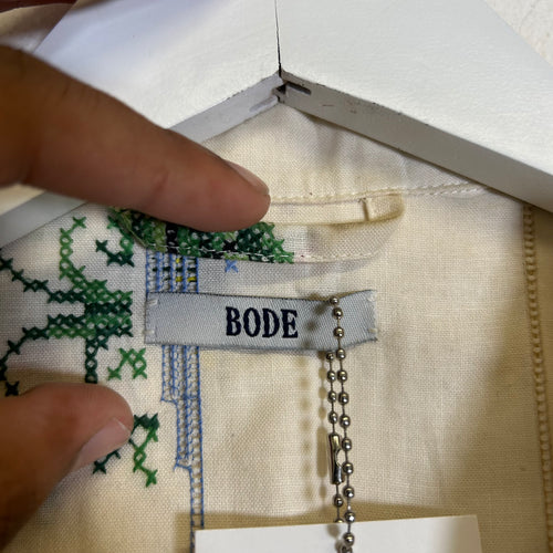 Bode Cream One Of A Kind Embroidered Button-Up Shirt Size M