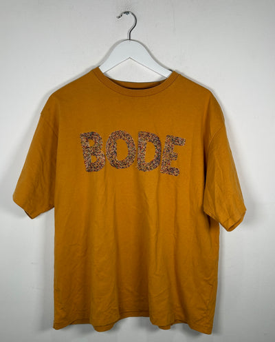 Bode Sequin Spell Out Logo Yellow T-Shirt Size XL