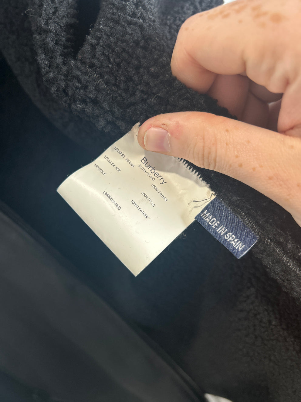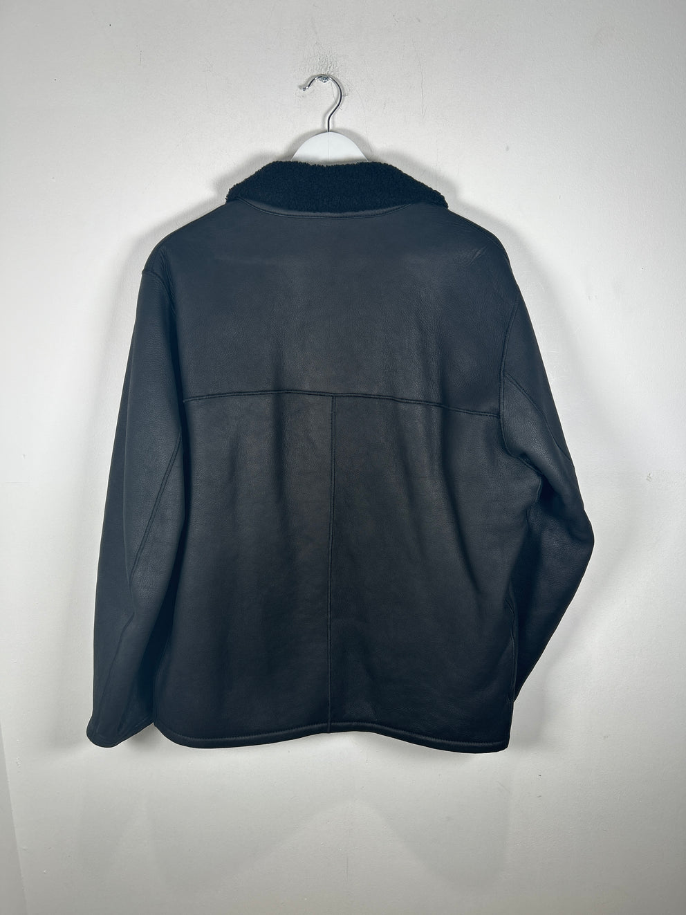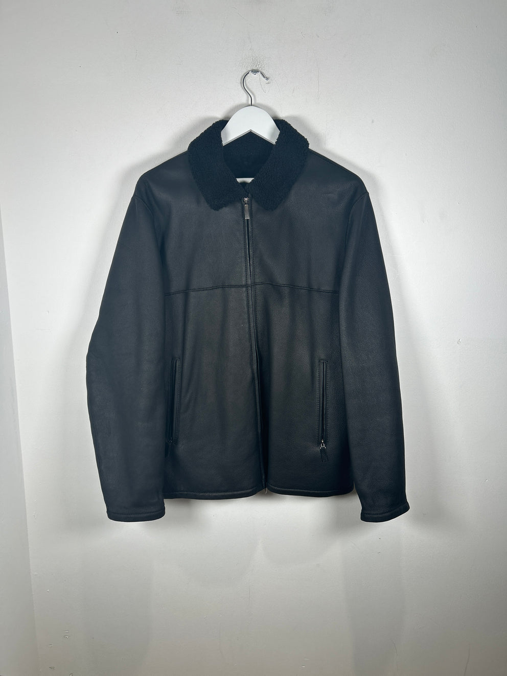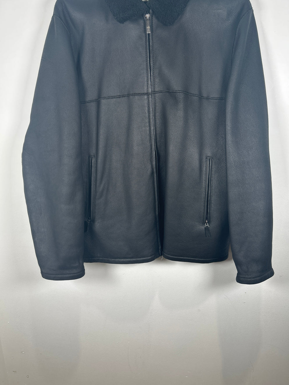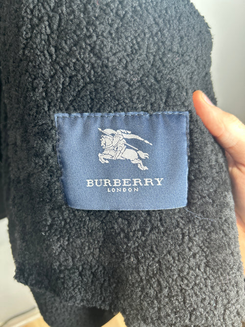Burberry Black Sherling Leather Zip Up Jacket Size M