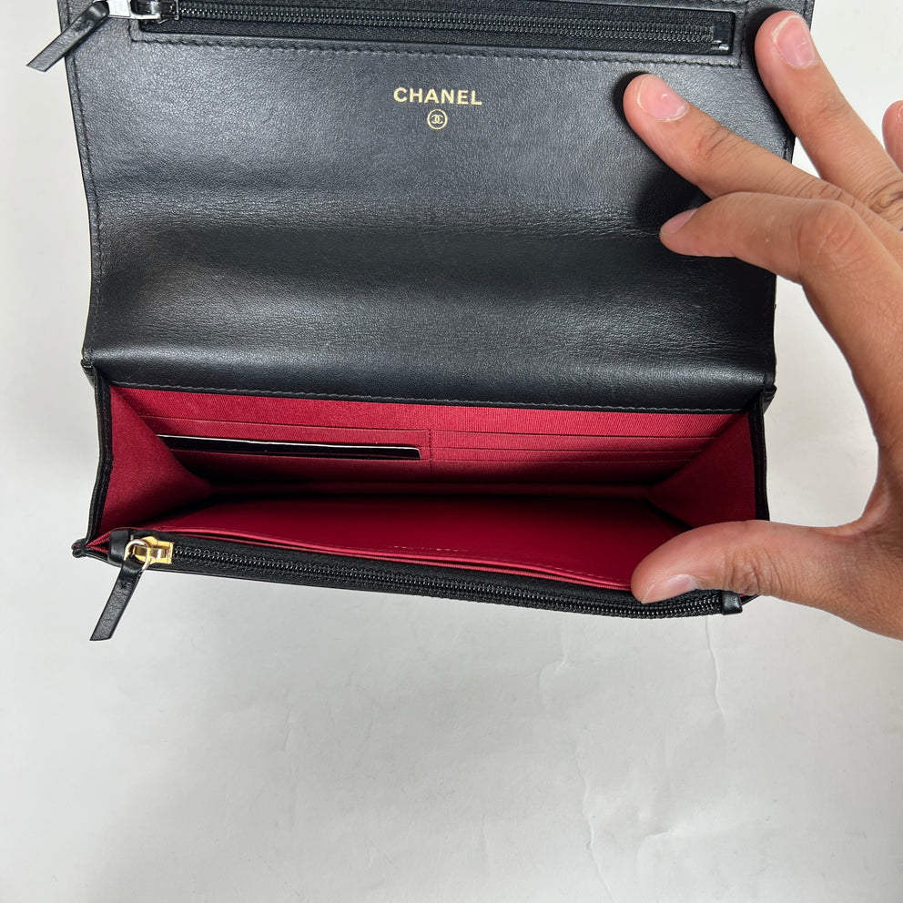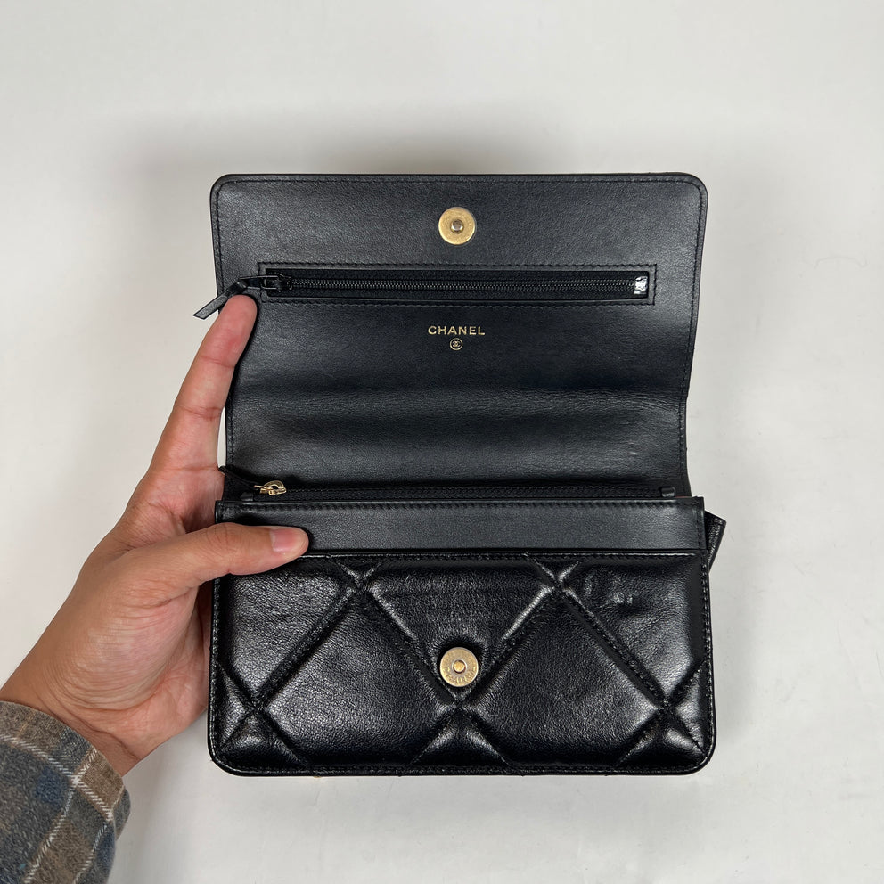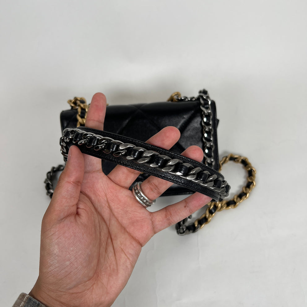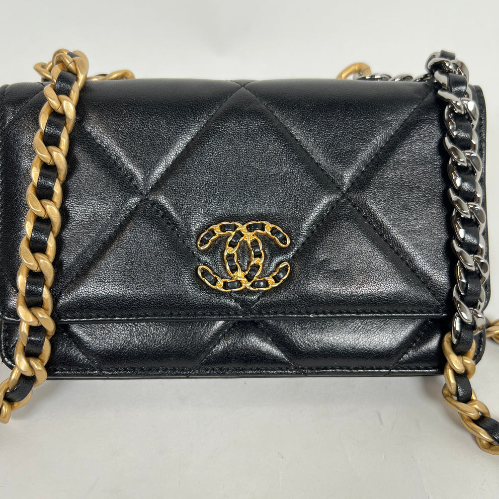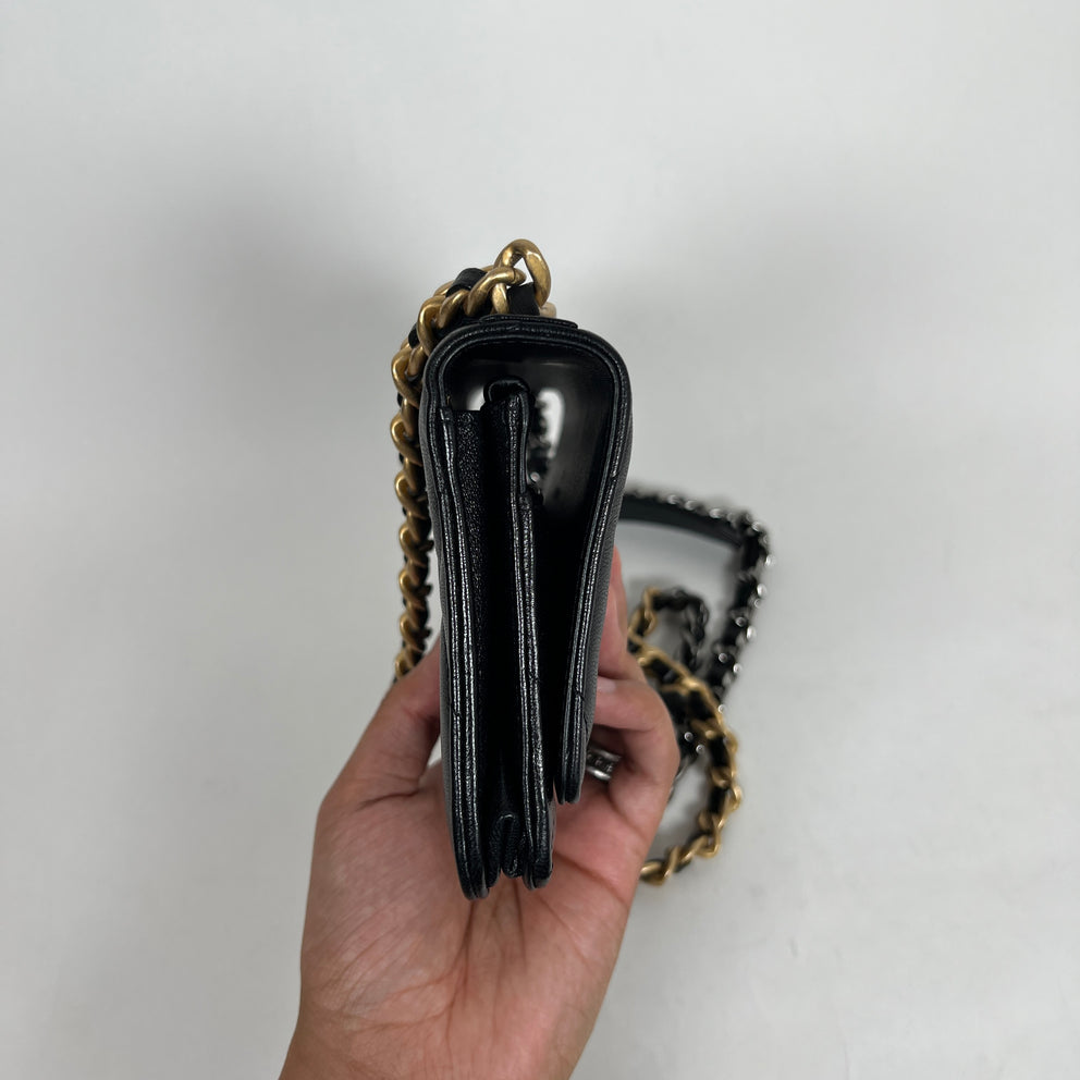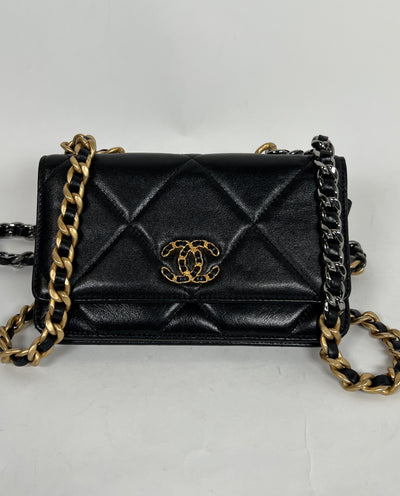 Chanel Black/Gold Quilted Lambskin 19 Wallet On Chain
