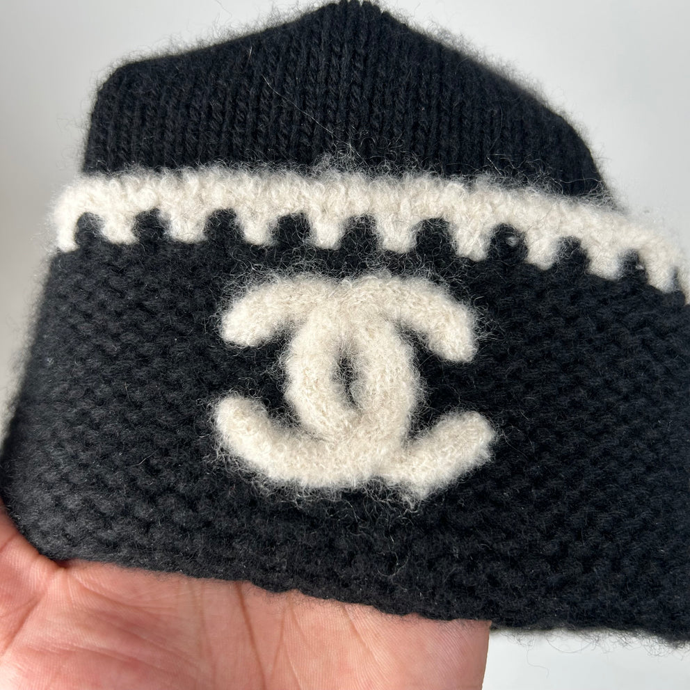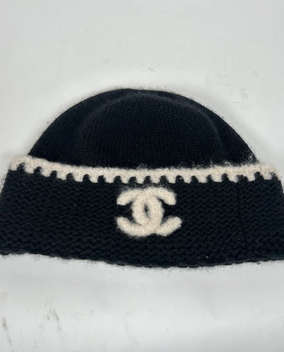 Chanel Black/White Interlocking CC Cashmere Beanie