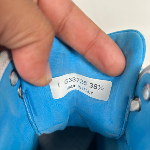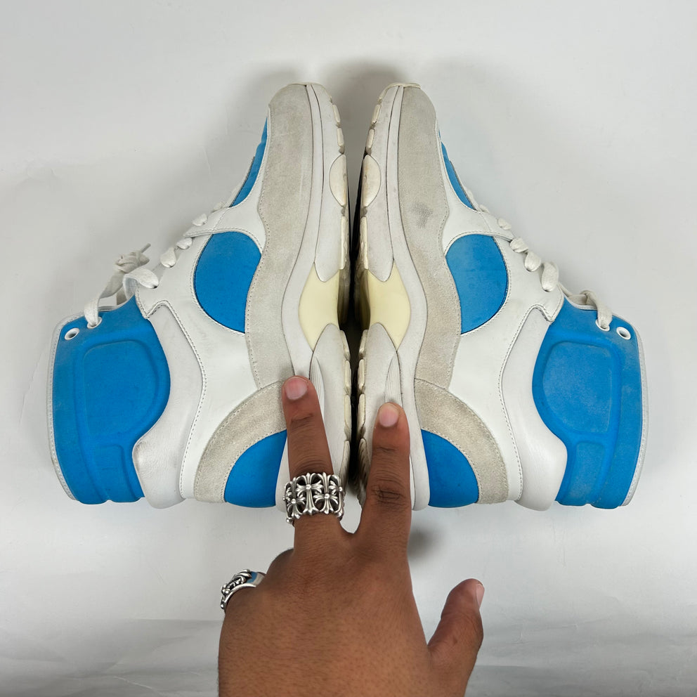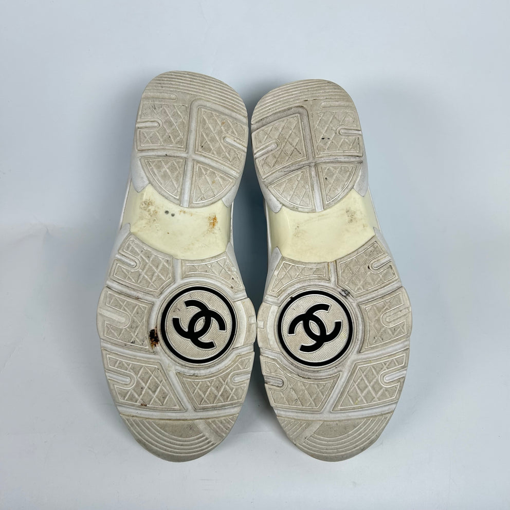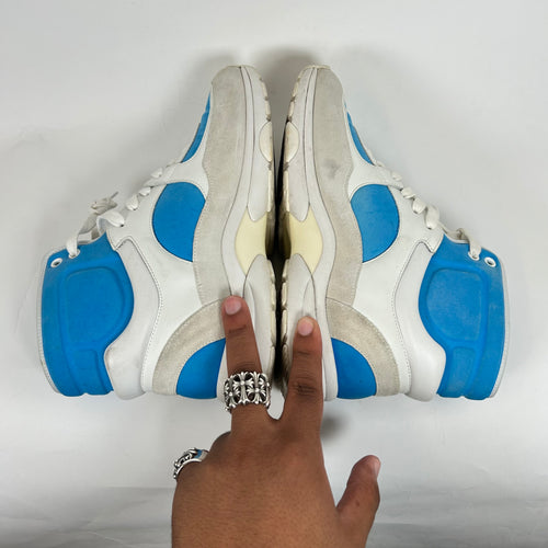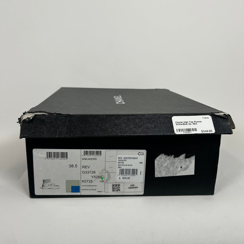 Chanel White/Blue Interlocking CC High-Top Sneaker Size 38.5