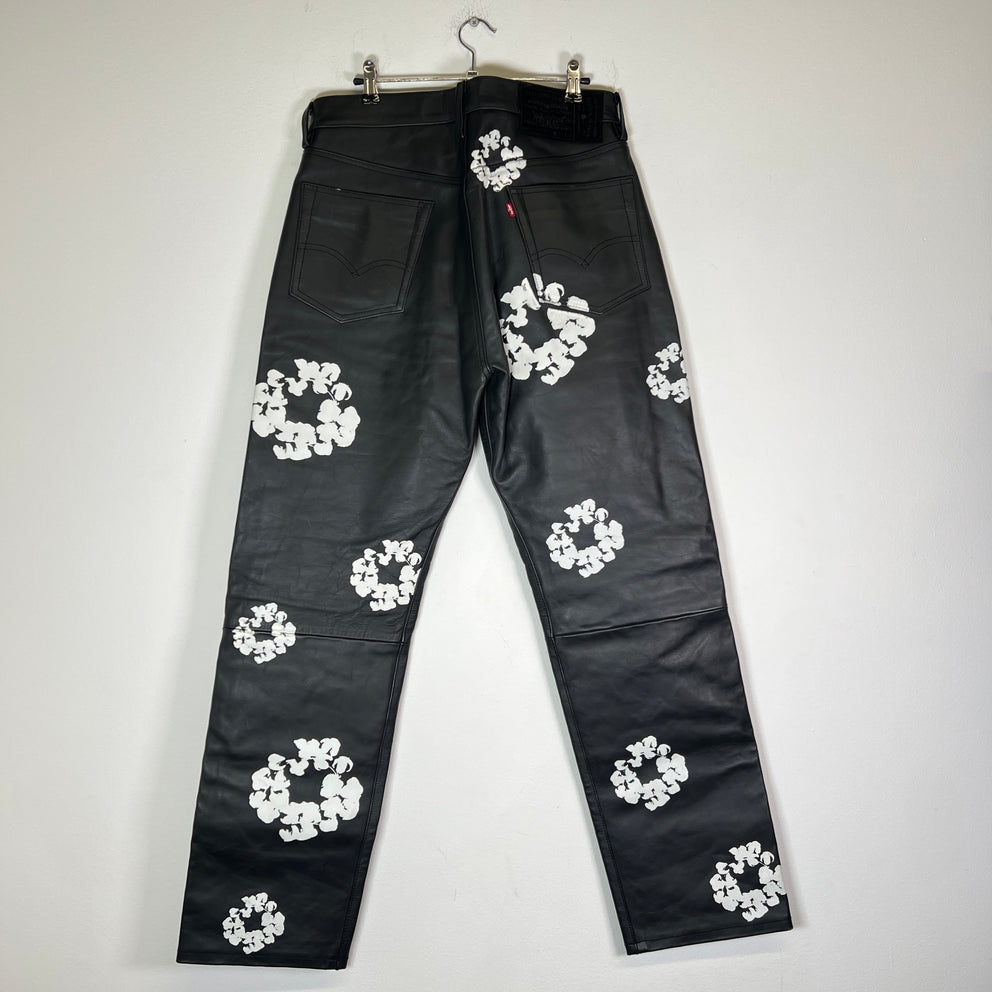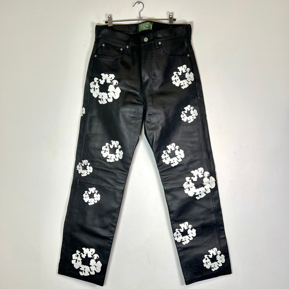 Denim Tears Black Leather Wreath Pants Size 32