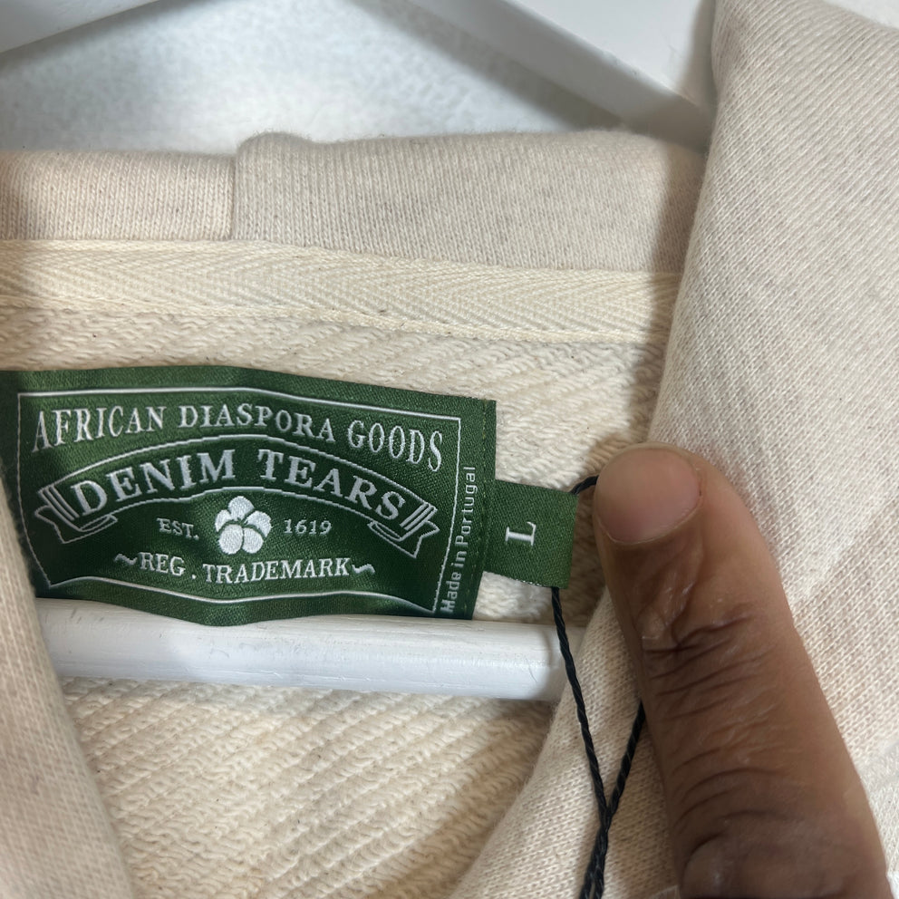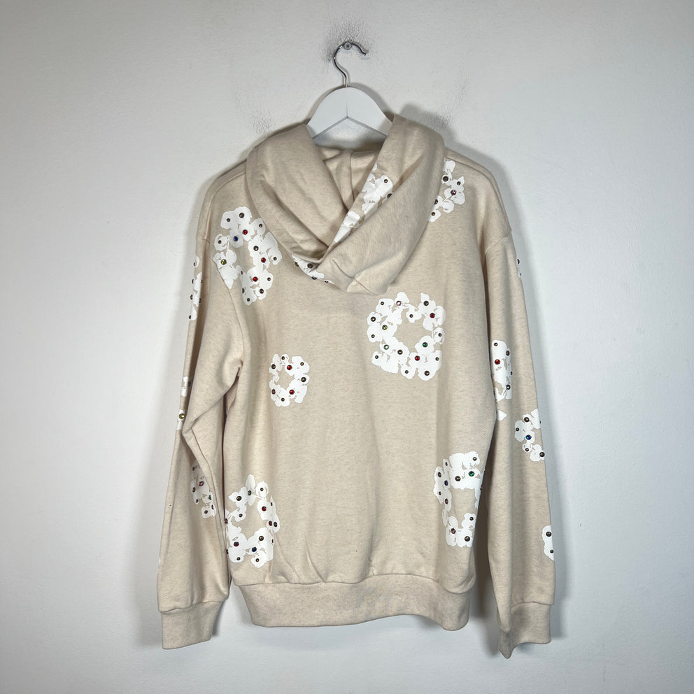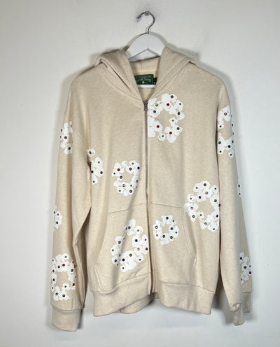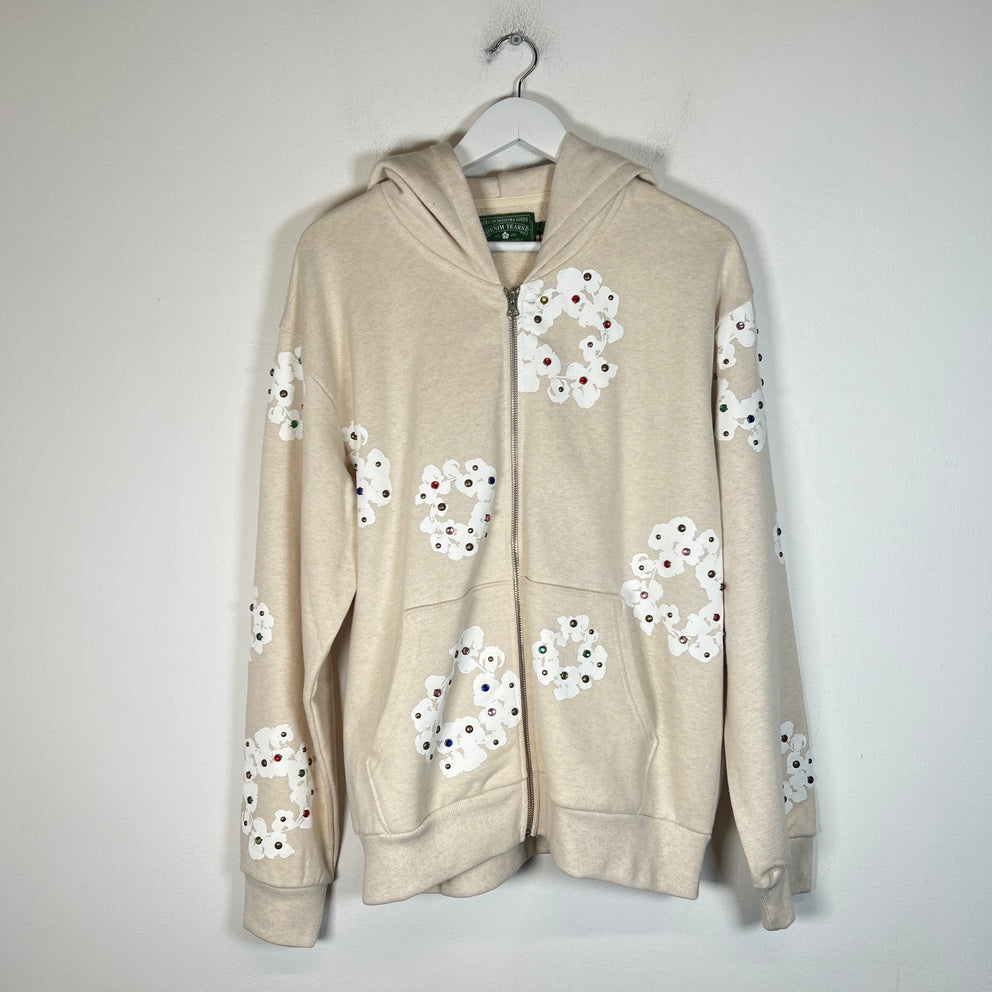 Denim Tears Oatmeal Rhinestone Wreath Zip-Up Hoodie Size L