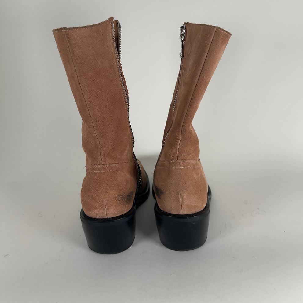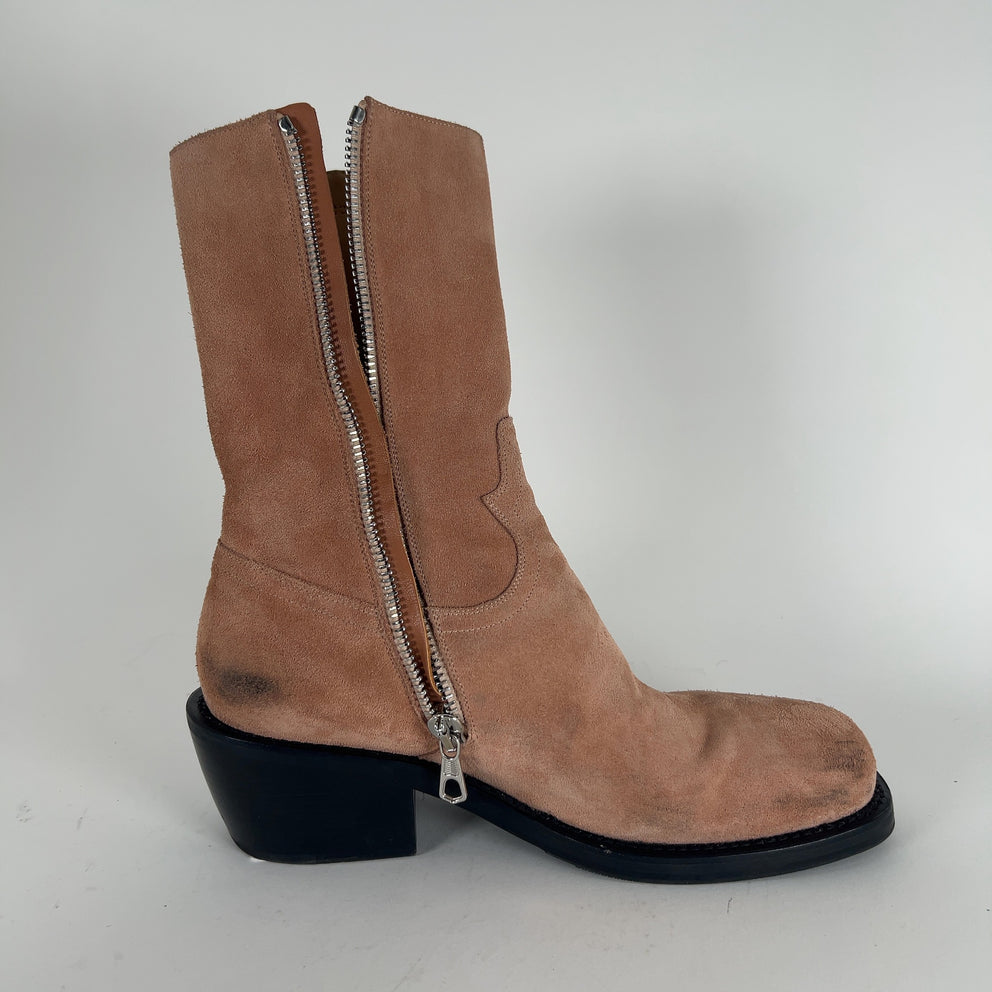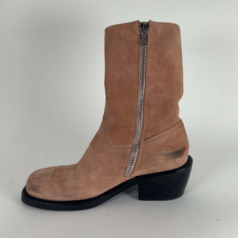 Dries Van Noten Western Blush Suede Zip Boots Size 10