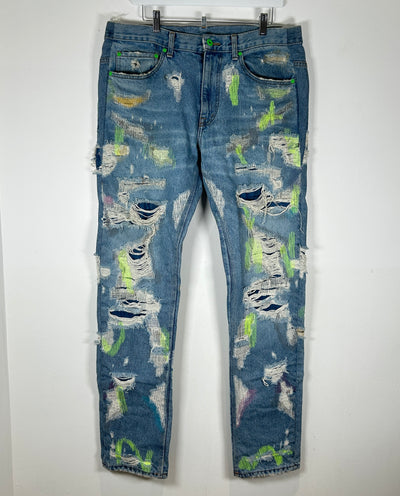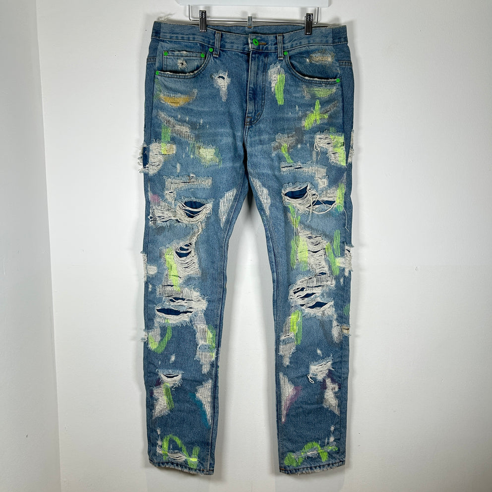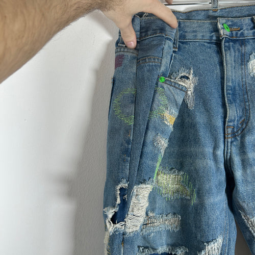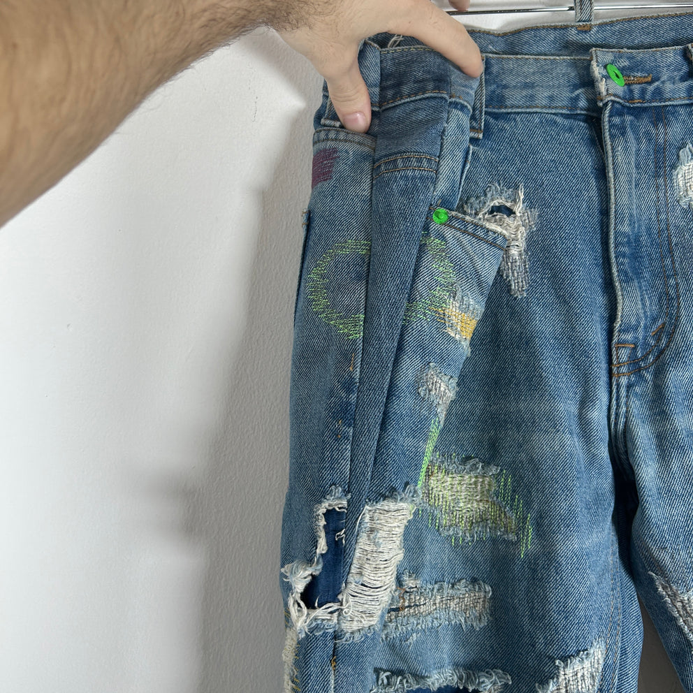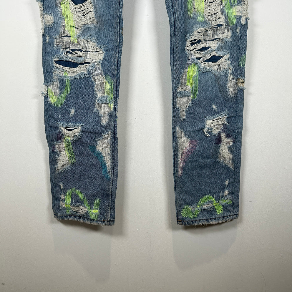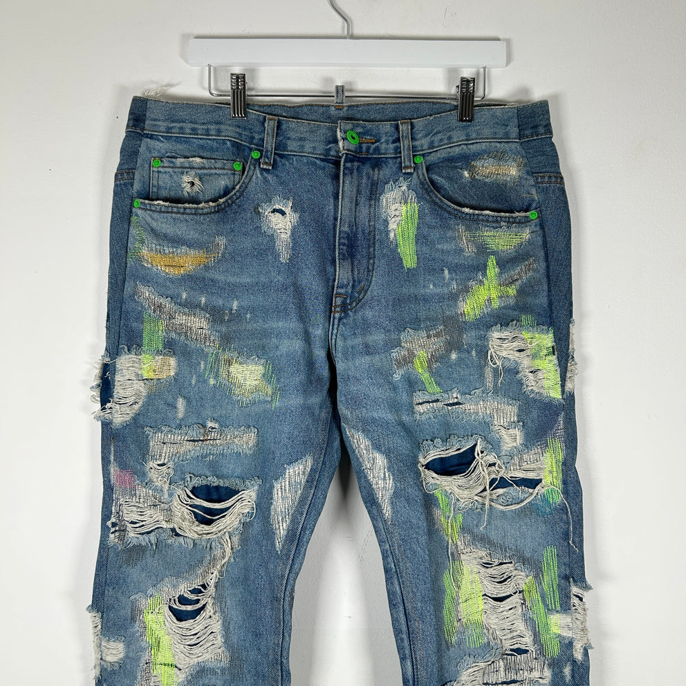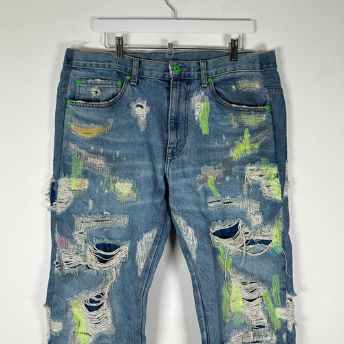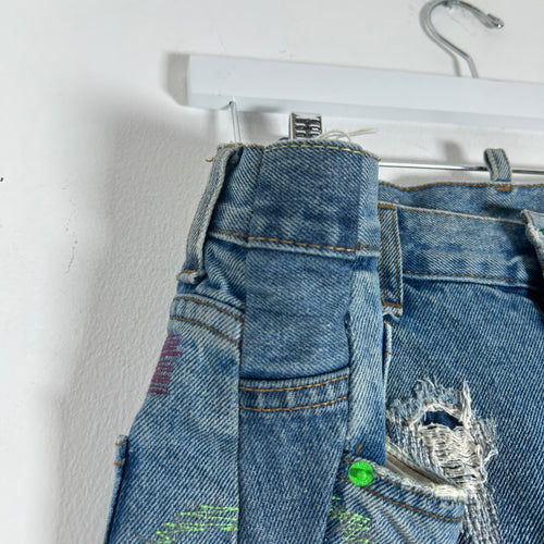 Endless Neon Green Embroidered Blue Denim Jeans Size 36