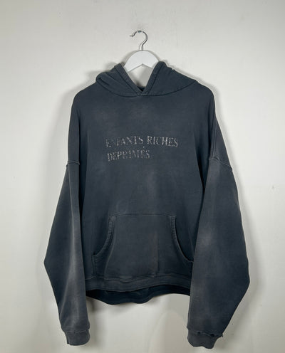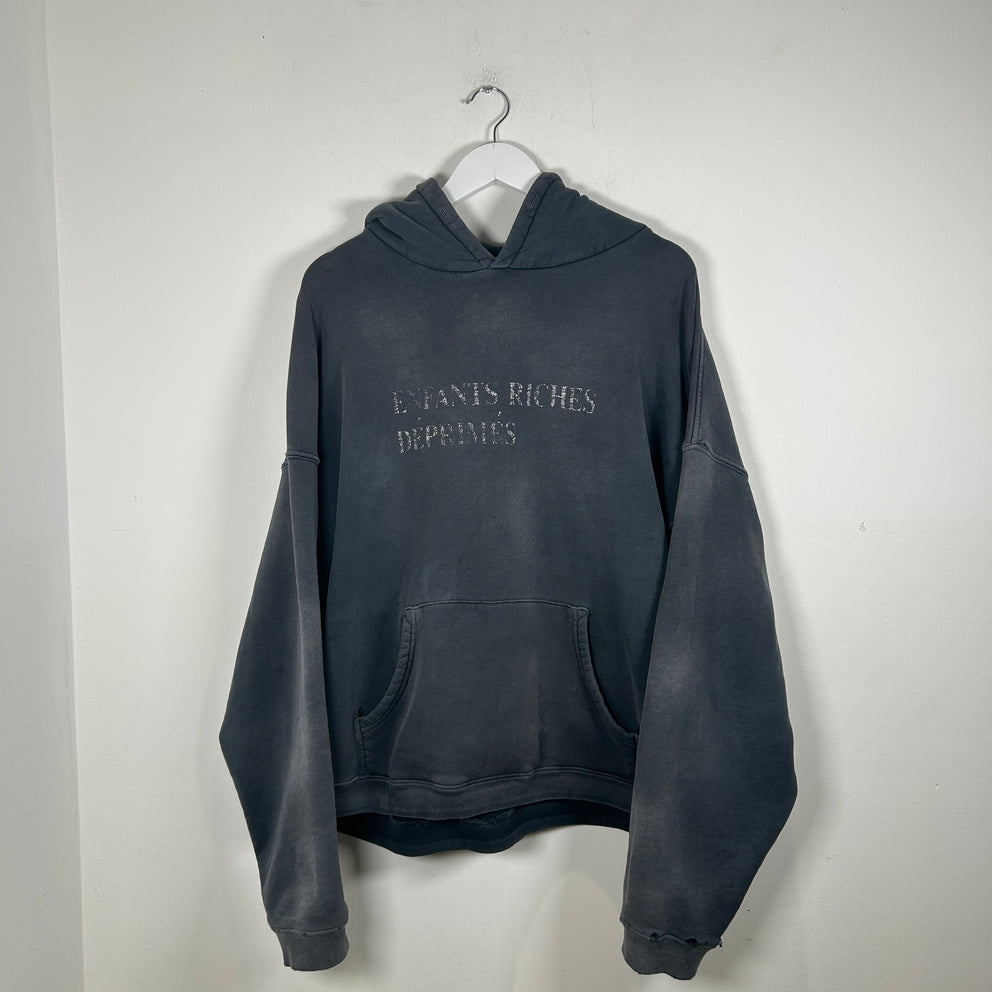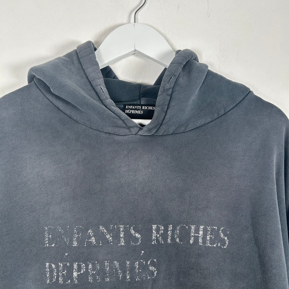 Enfants Riches Deprimes Distressed Grey Washed Logo Hoodie Size XL