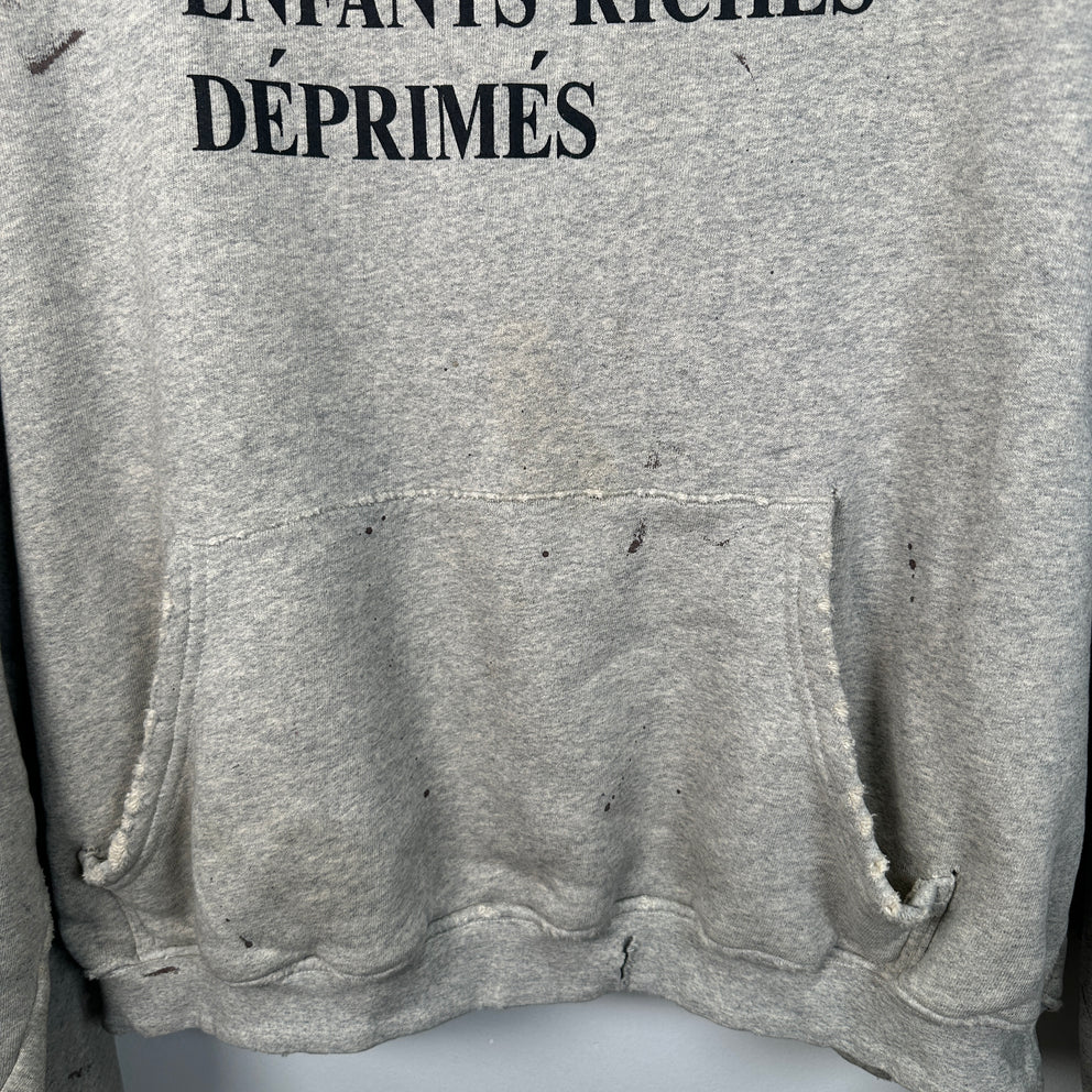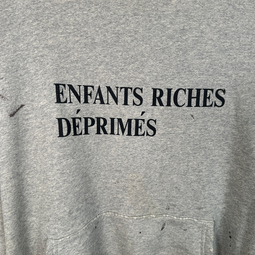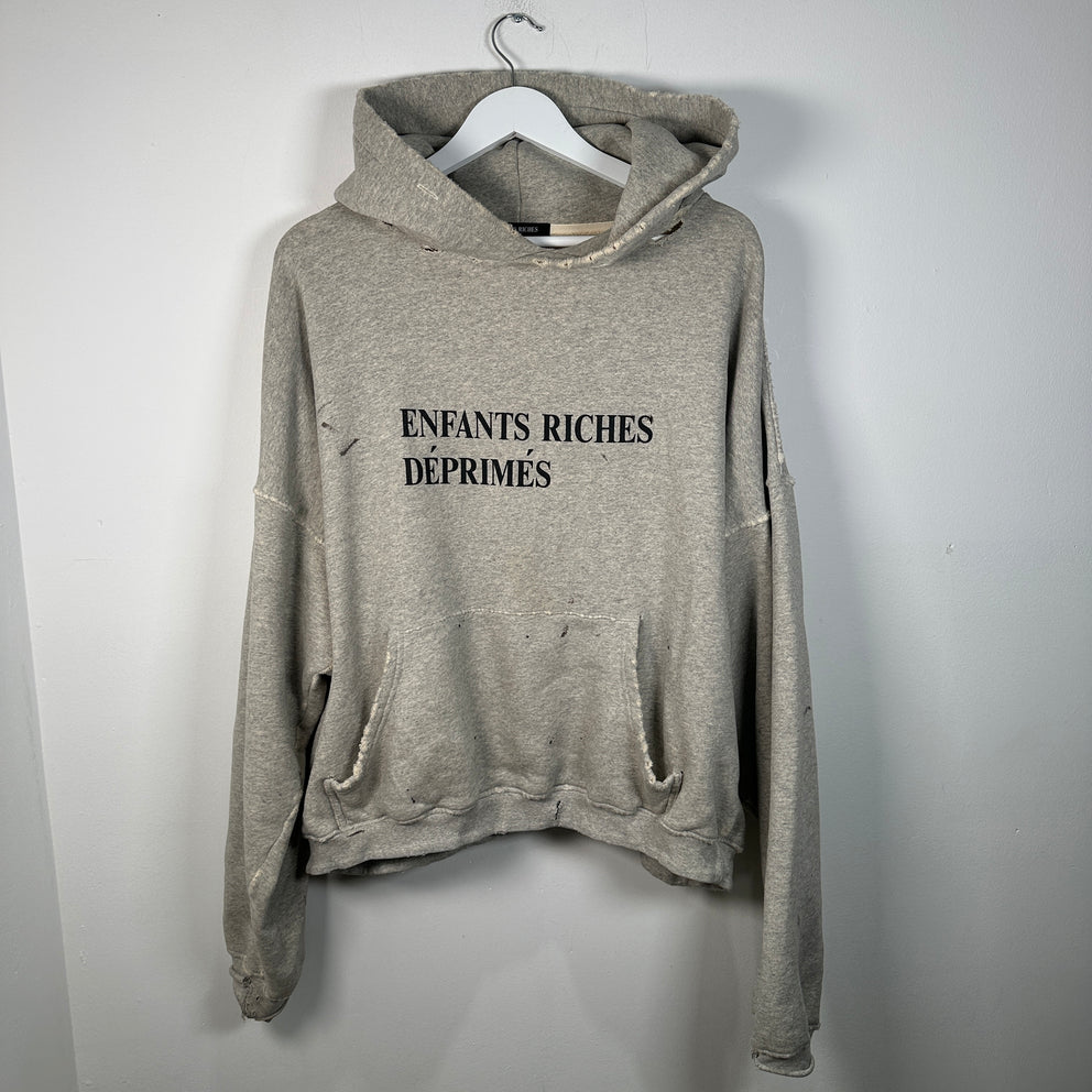 Enfant Riches Deprimes Grey Distressed Logo Hoodie Size XL