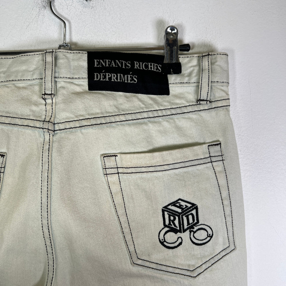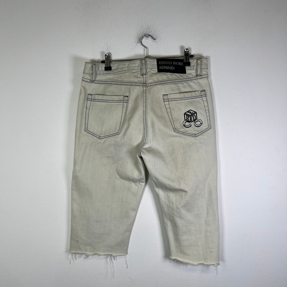 Enfants Riches Deprimes White Patch Denim Cut-Off Shorts Size 31