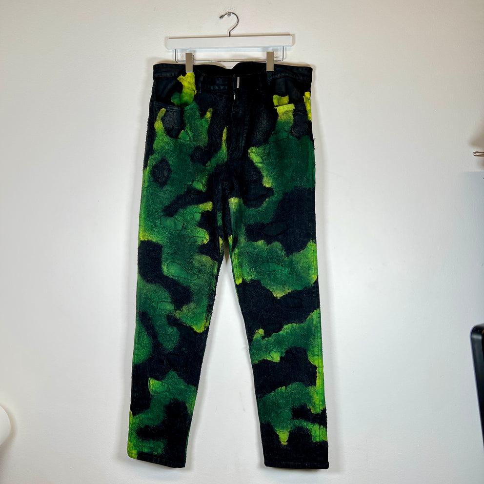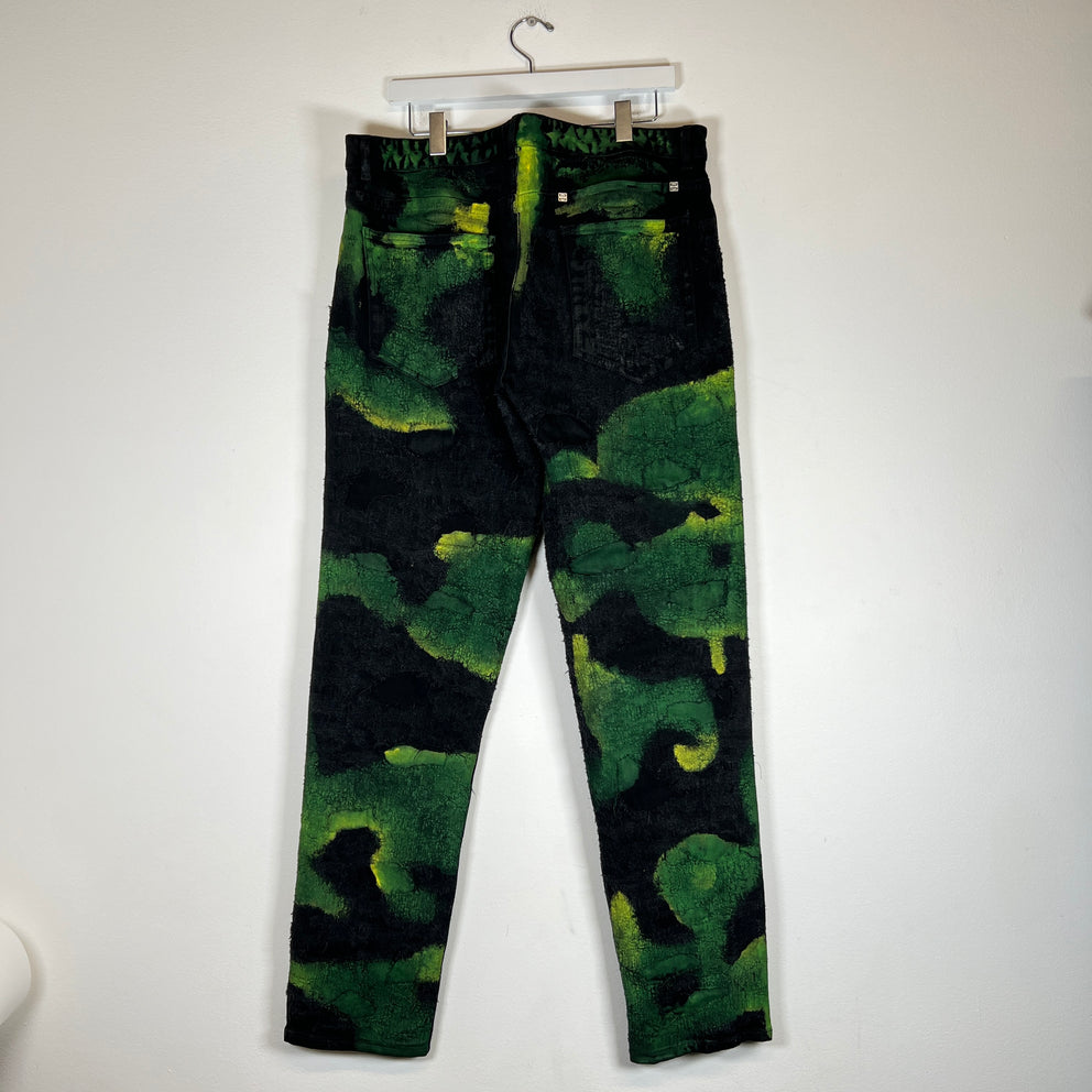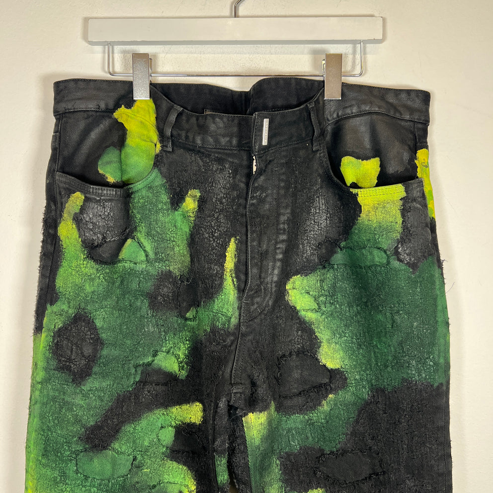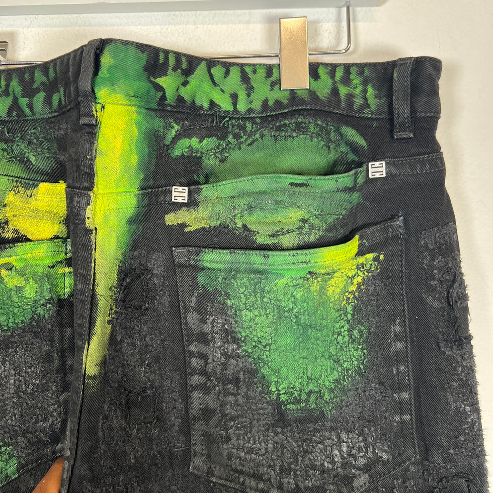 Givenchy Black/Green Painted Distressed Jeans Size 38