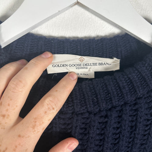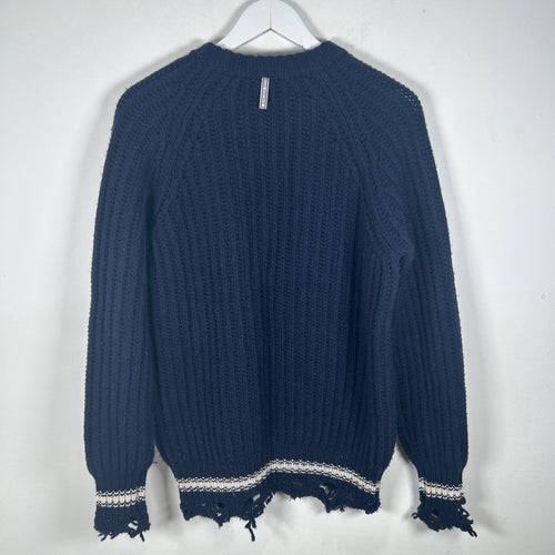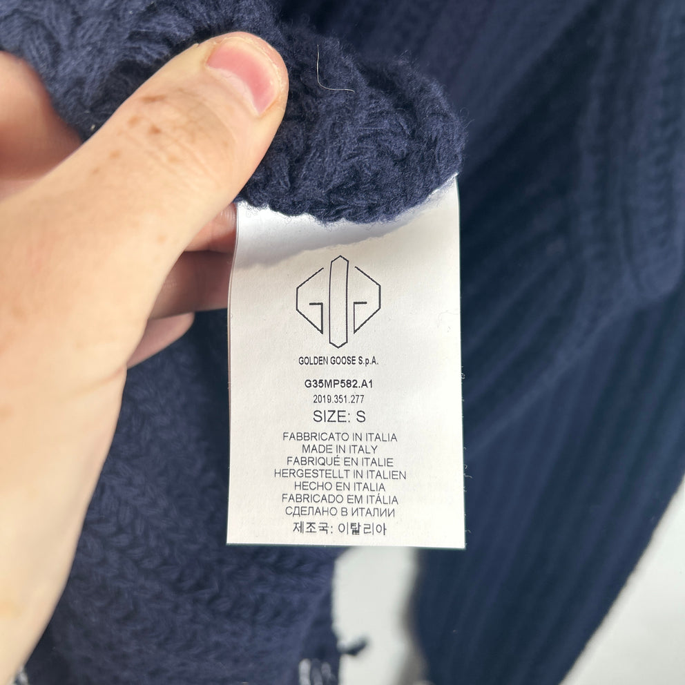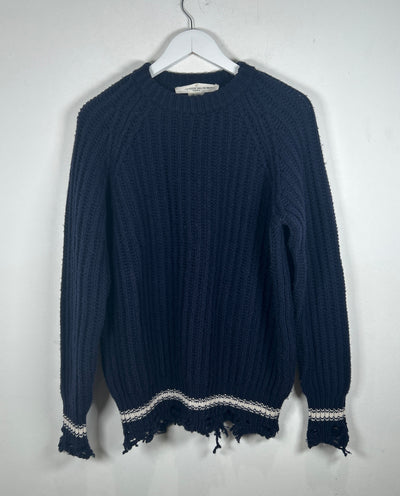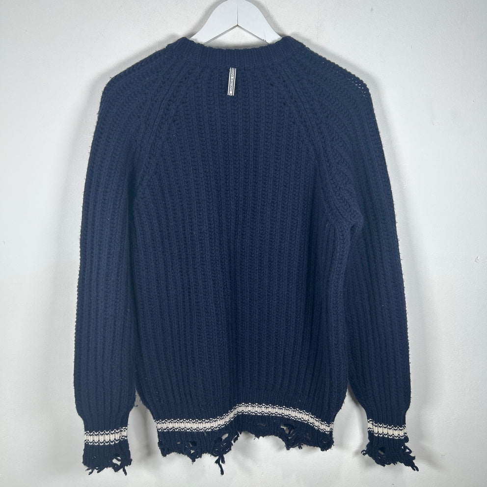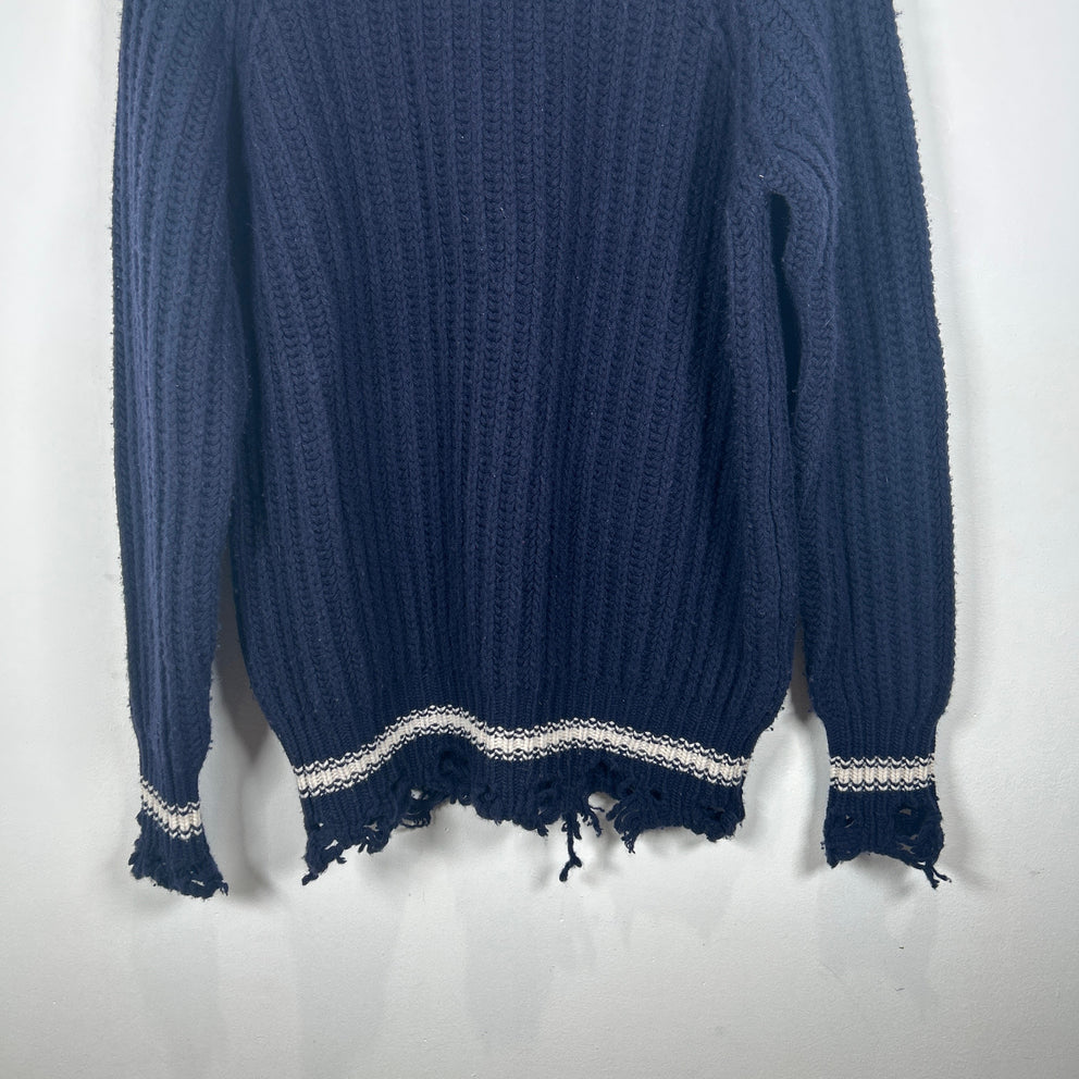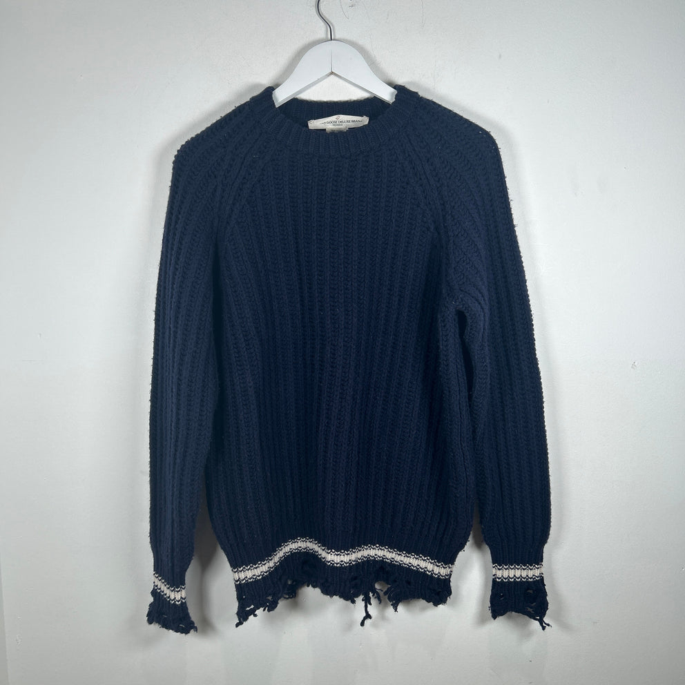 Golden Goose Navy Cable Knit Distressed Sweater Size S