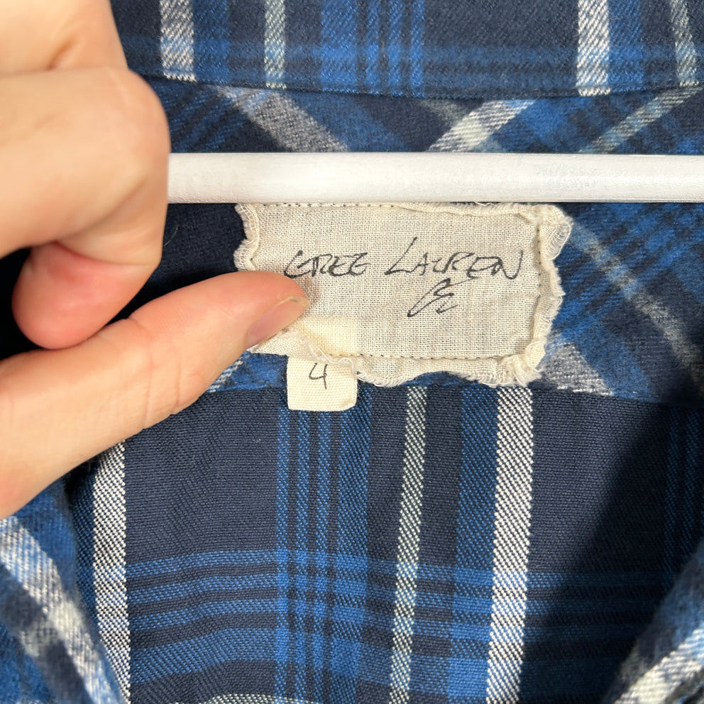 Greg Lauren Blue Plaid Button-Up Shirt Size 4