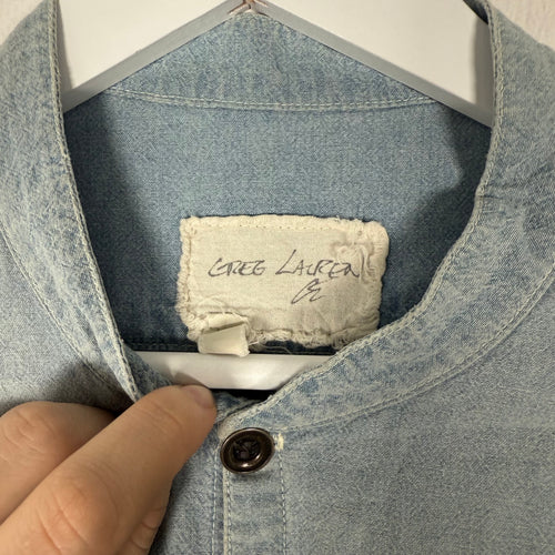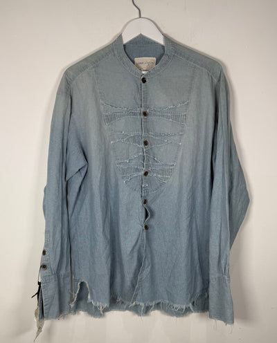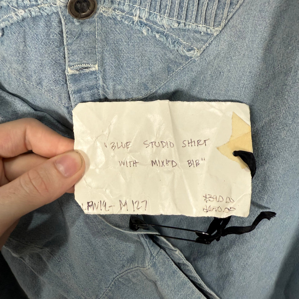 Greg Lauren 'Blue Stuidio Shirt With Mixed Bib' Button Up Shirt Size L