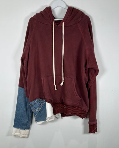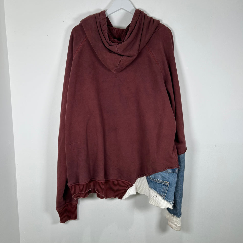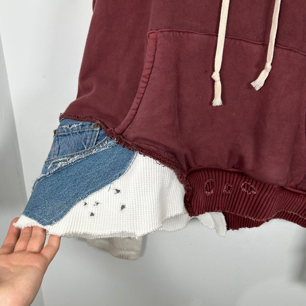 Greg Lauren Maroon Patchwork Fragment Hoodie Size 4