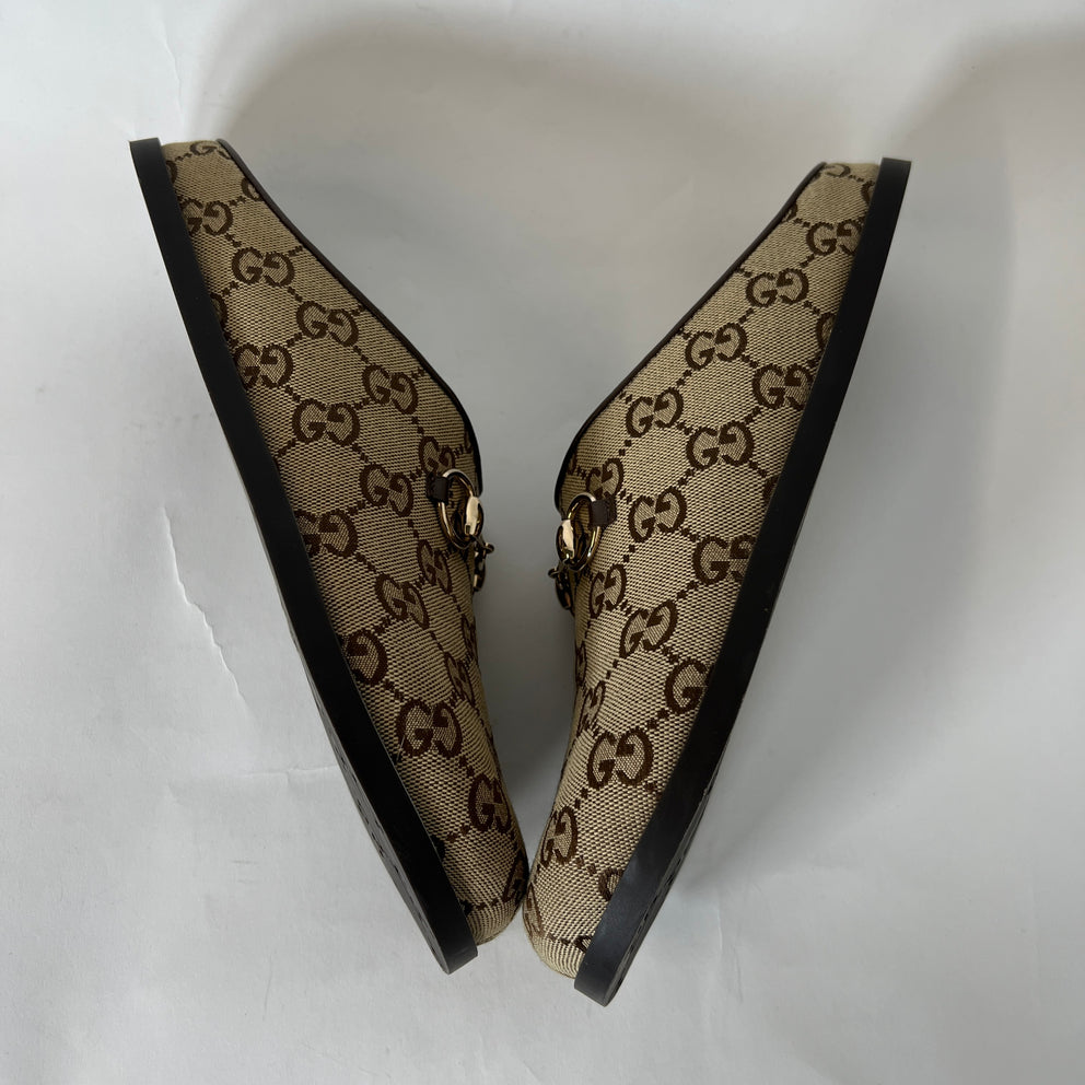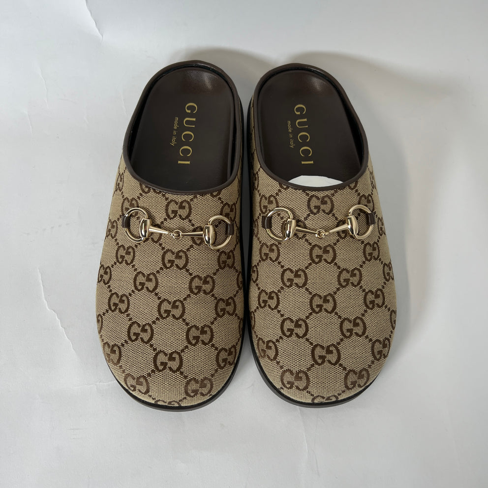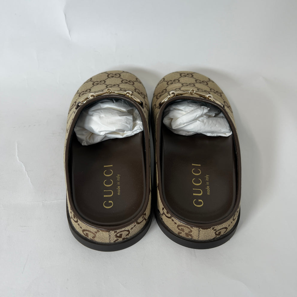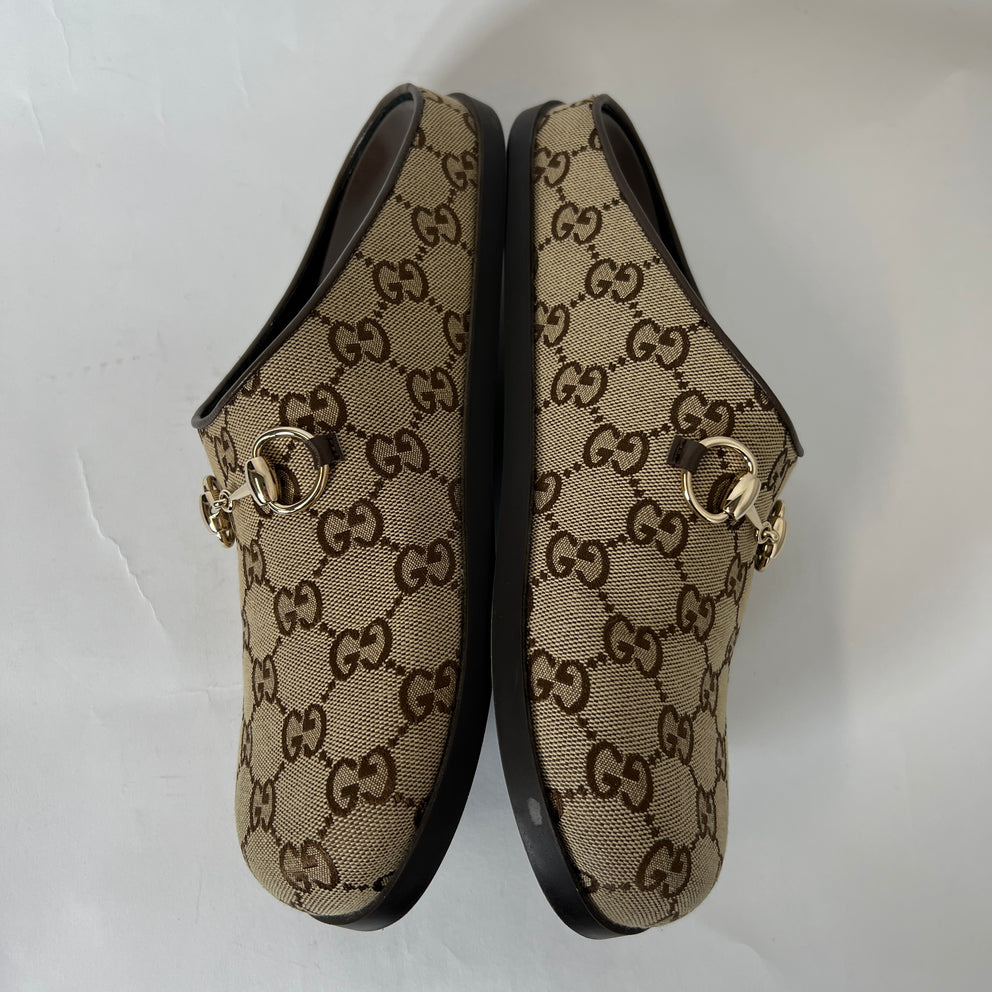 Gucci Beige GG Supreme Horsebit Mules Size 39