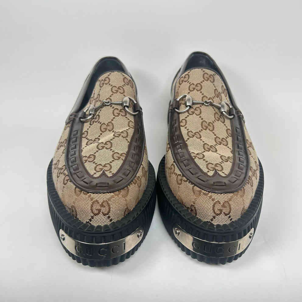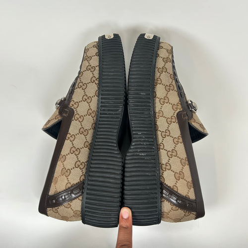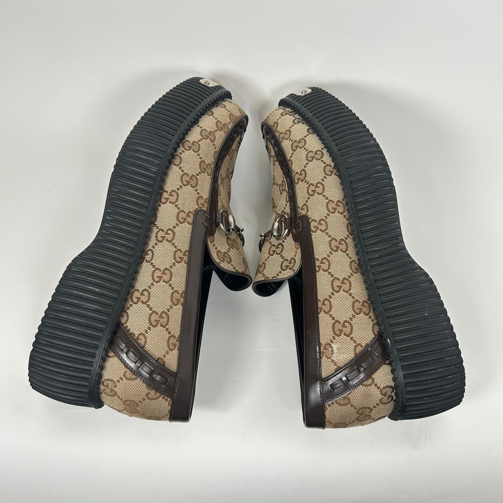 Gucci Beige Horsebit GG Creeper Loafers Size GG 10.5