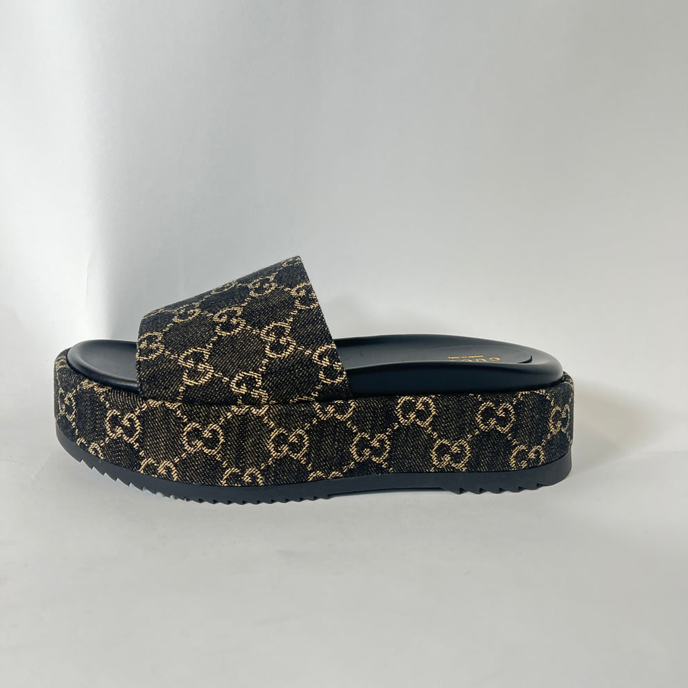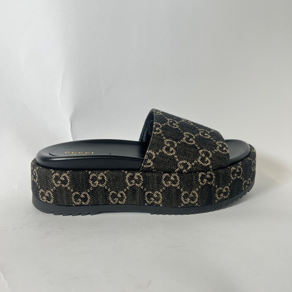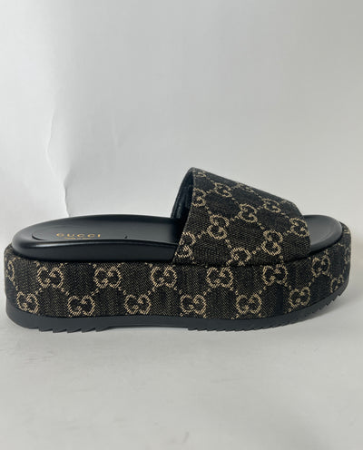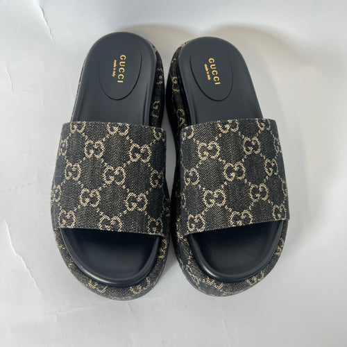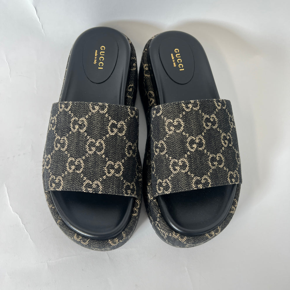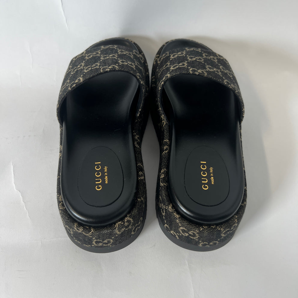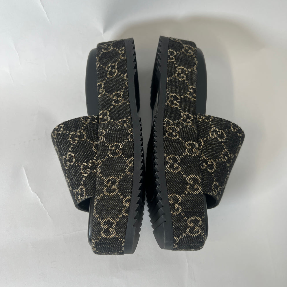 Gucci Black Denim GG Jacquard Sandals Size 37