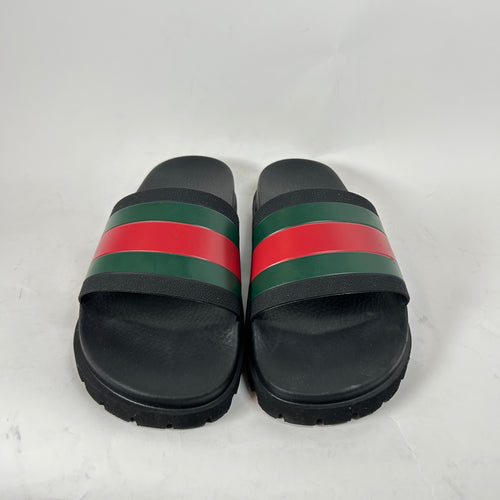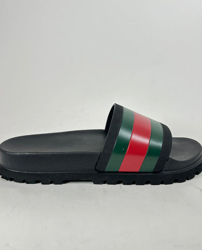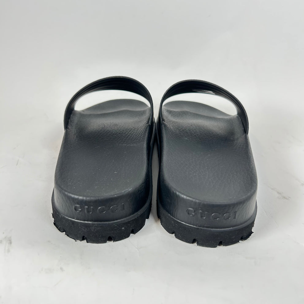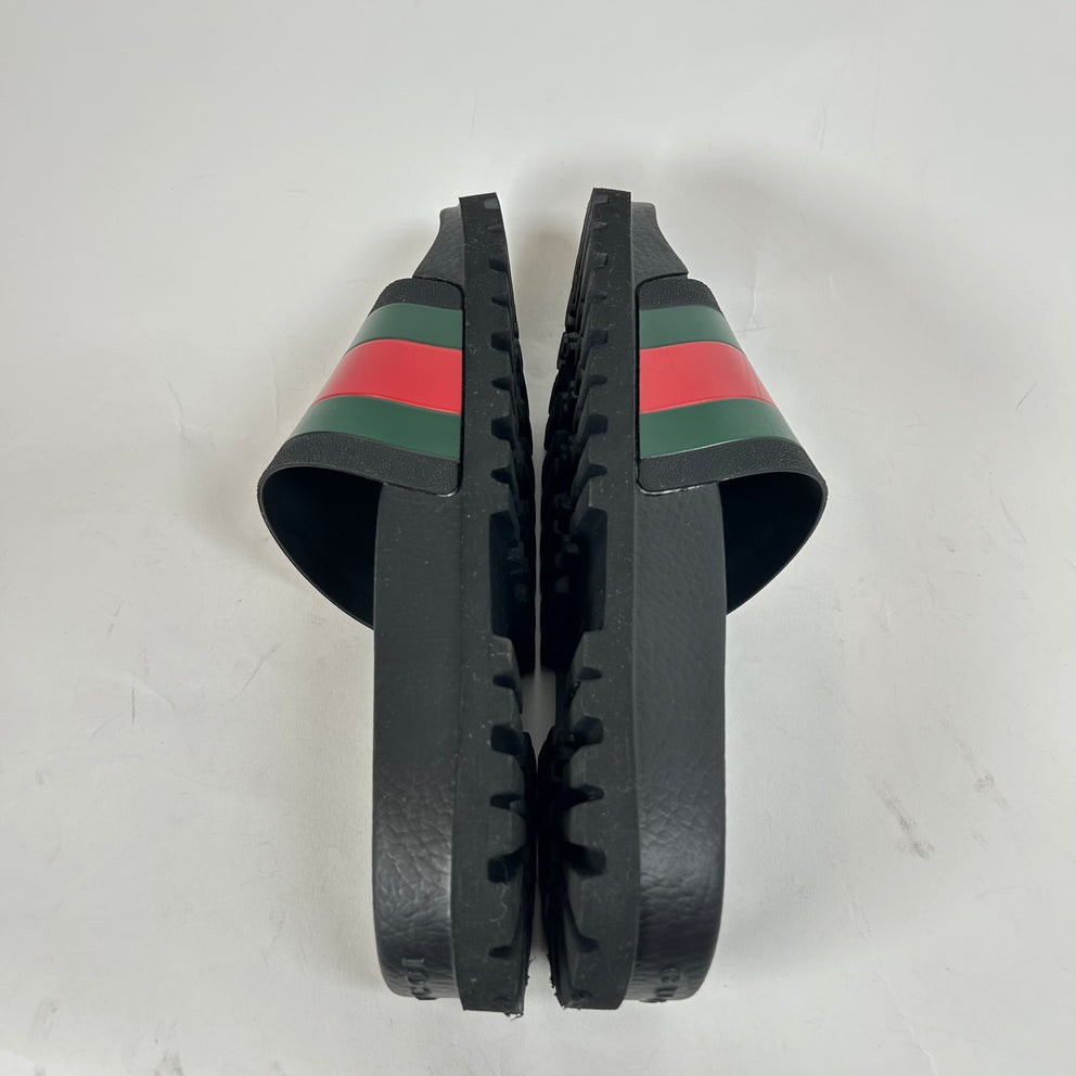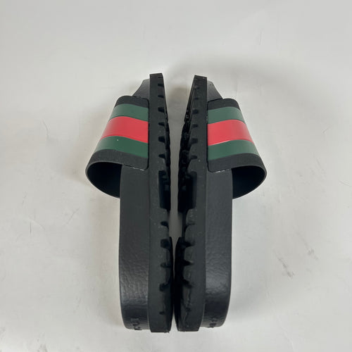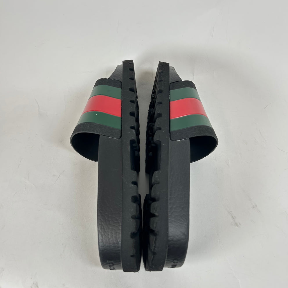 Gucci Black Rubber Web Slide Sandal Size GG 9