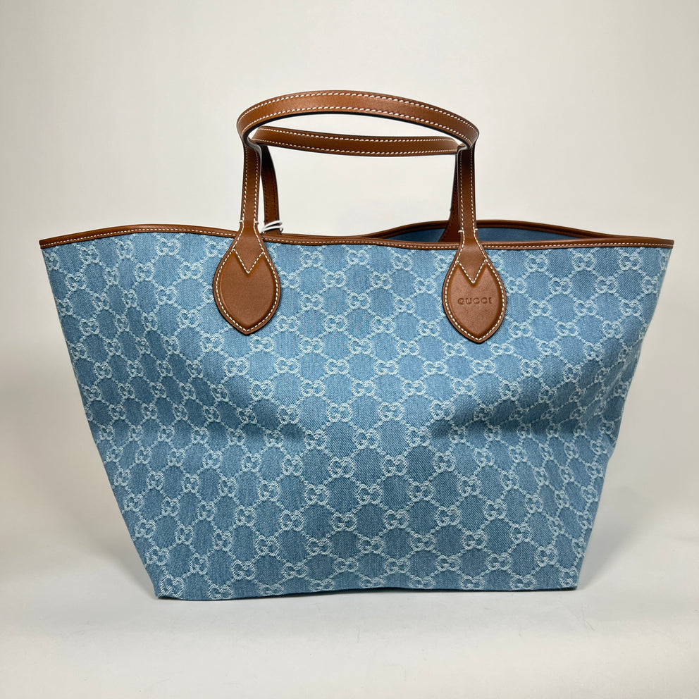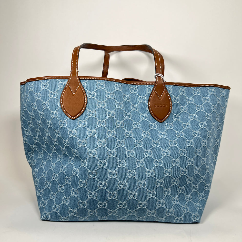 Gucci Blue Denim Totissima GG Large Tote Bag