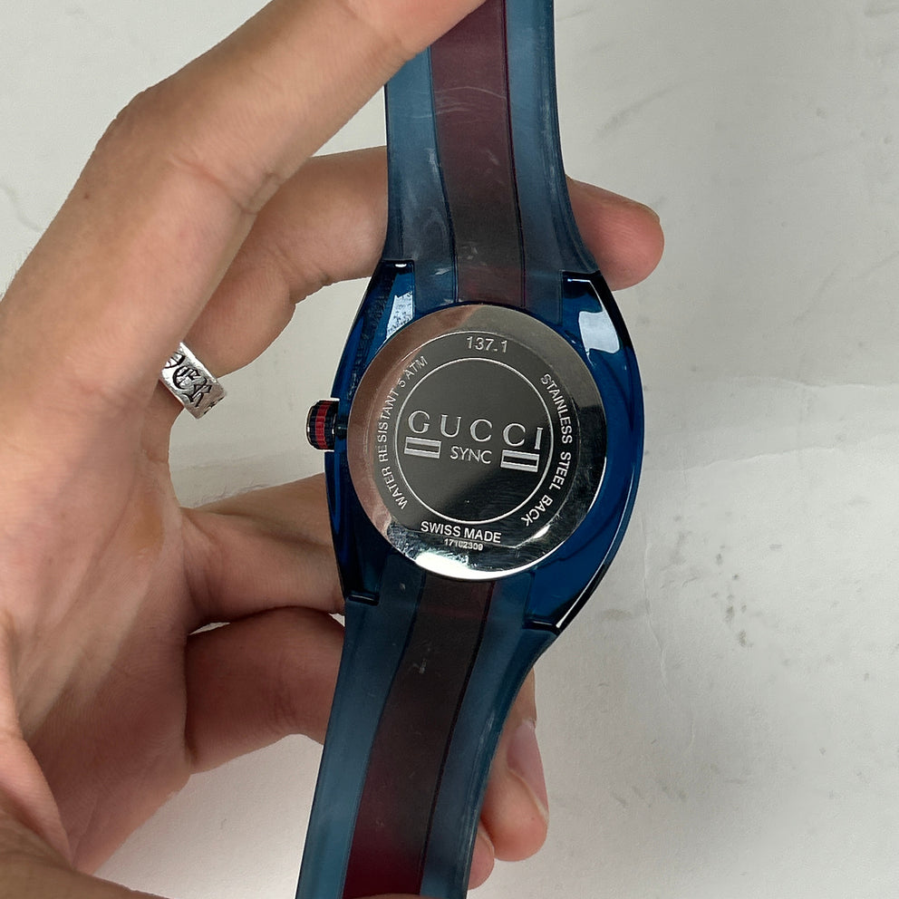 Gucci Blue/Red Sync XL 43MM Rubber Band Watch