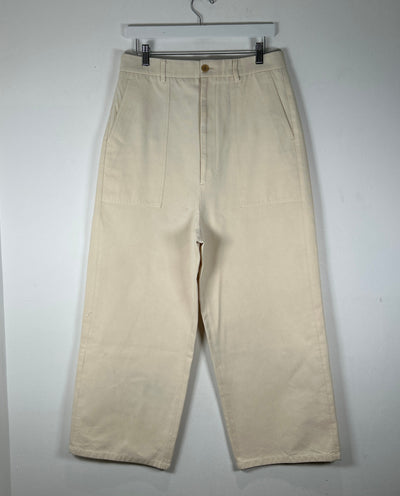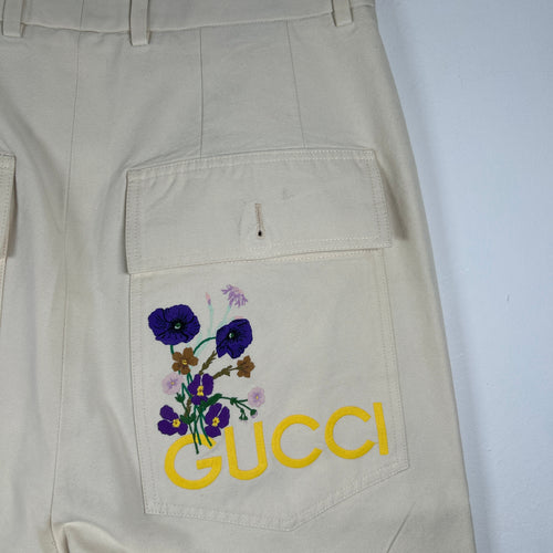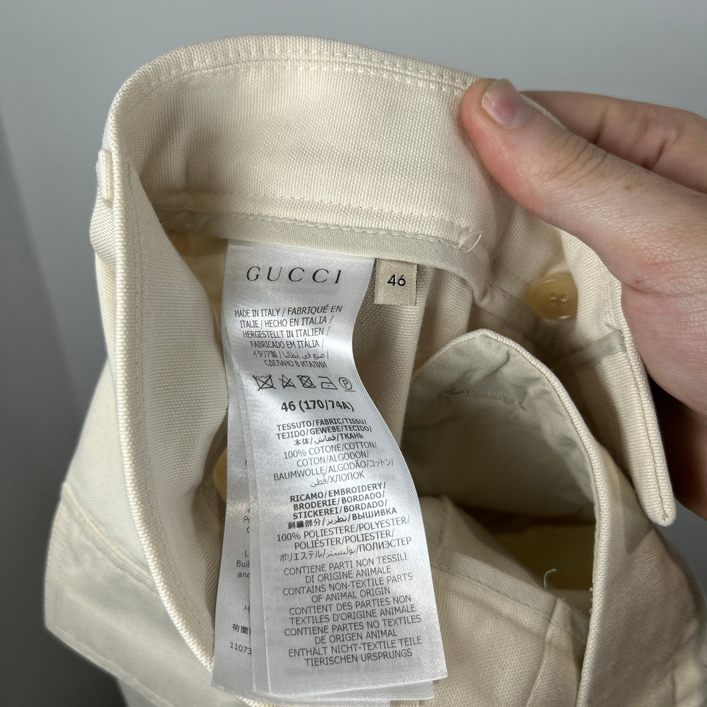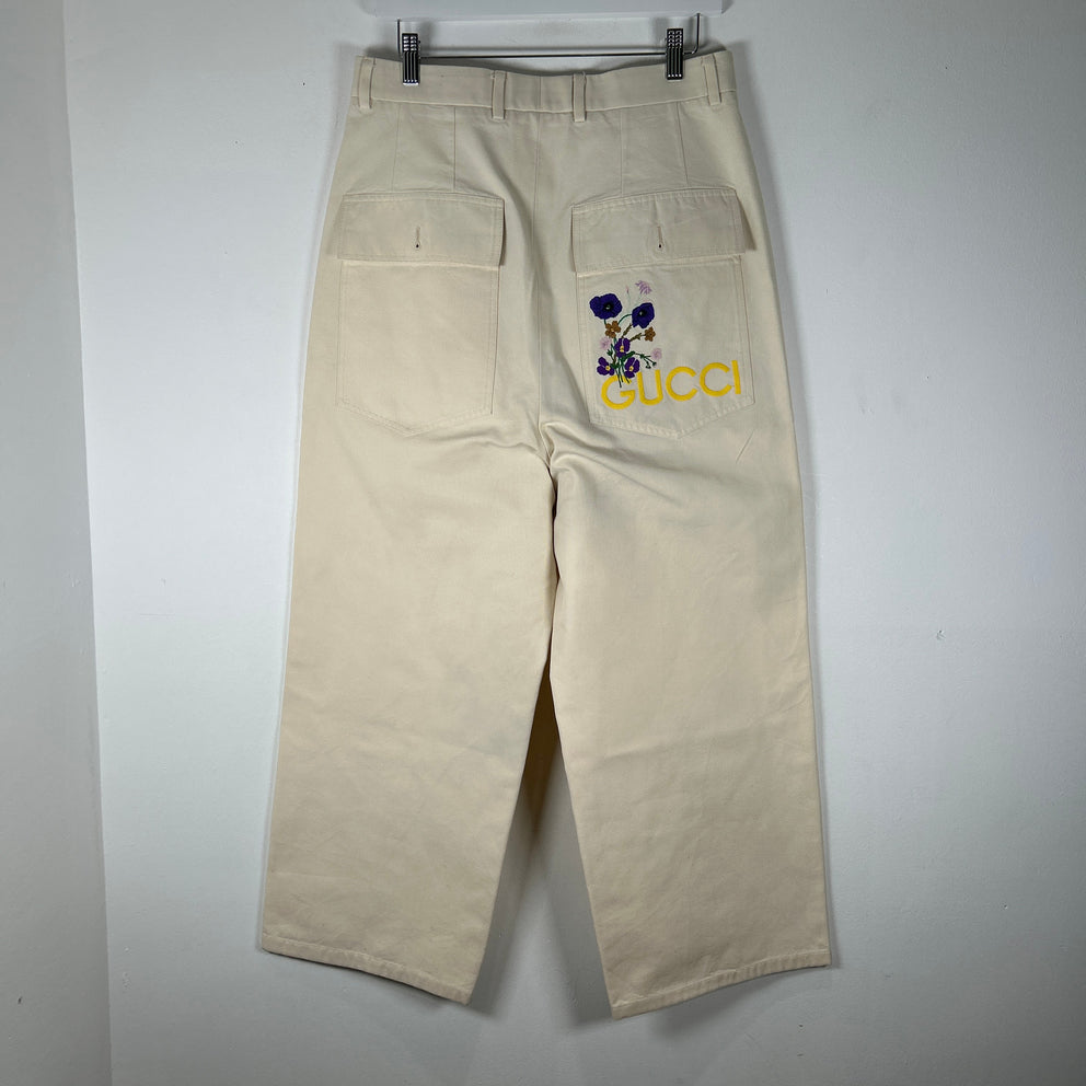 Gucci Cream Canvas Floral Logo Workwear Pants Size 30