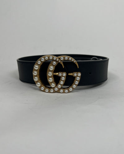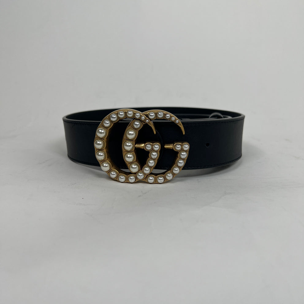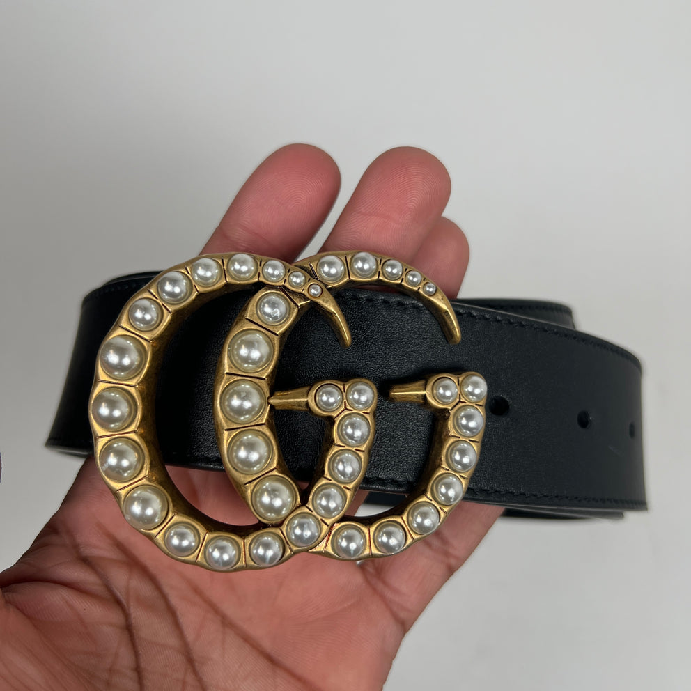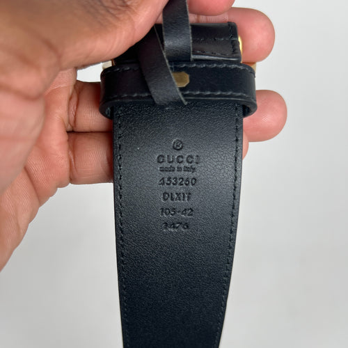Gucci Double G Pearl Buckle Leather Belt Size 105