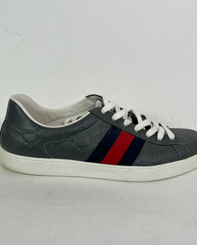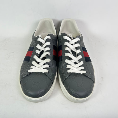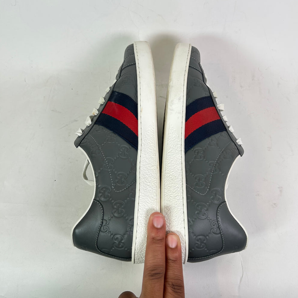 Gucci Grey Embossed Web Ace Sneaker Size 11