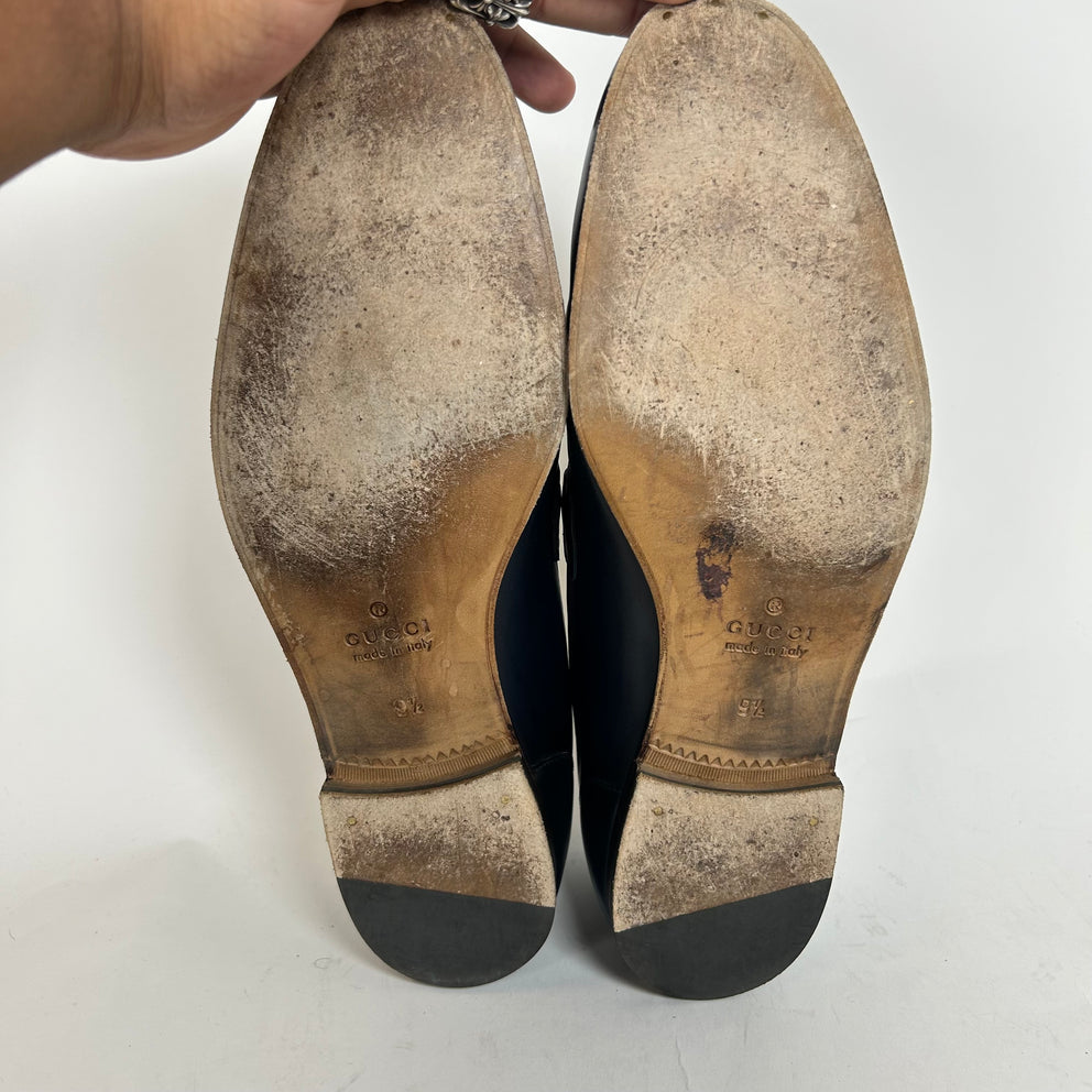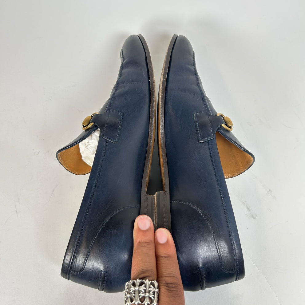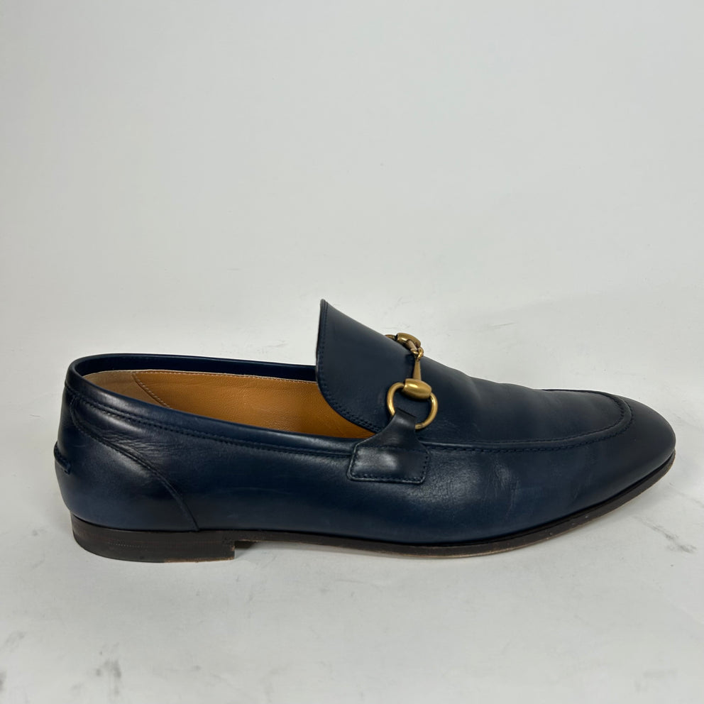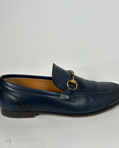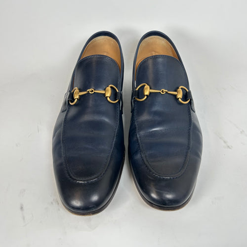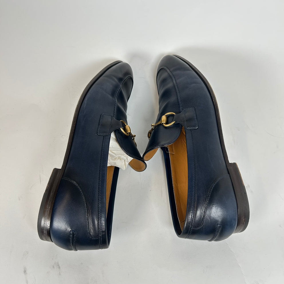 Gucci Navy Jordaan Horsebit Loafers Size GG 9.5