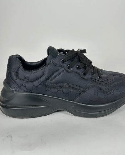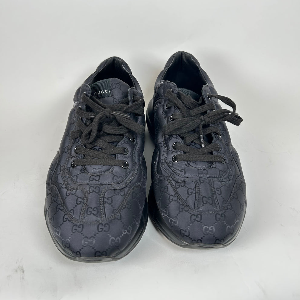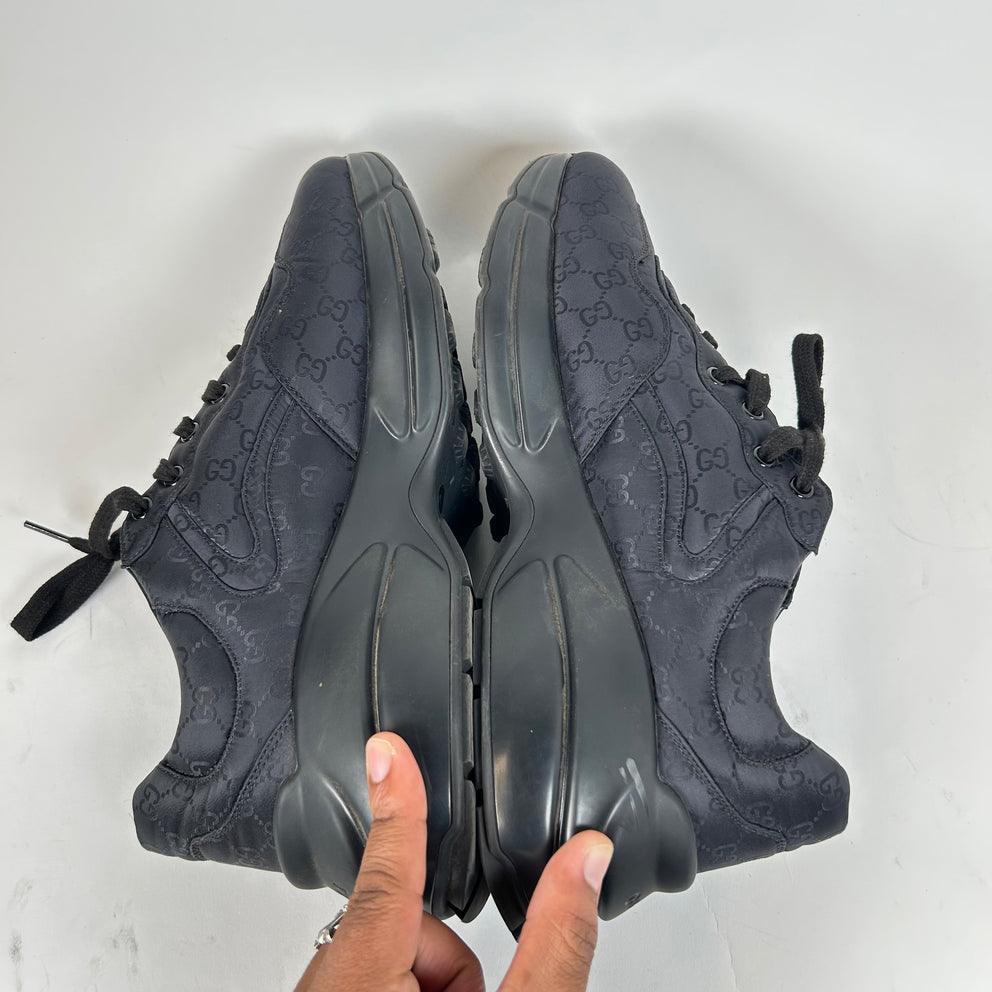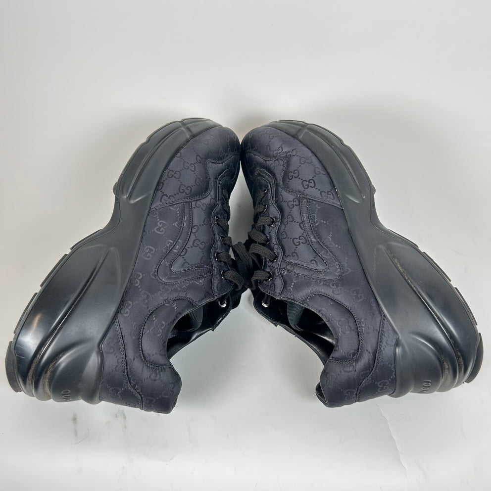 Gucci Triple Black Nylon GG Rhyton Sneaker Size GG 10.5