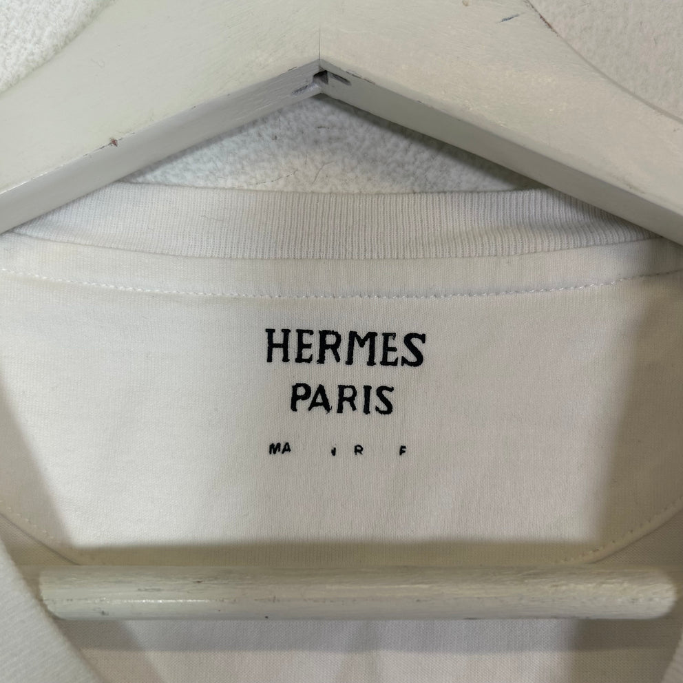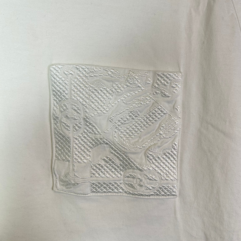 Hermes Embroidered Pocket Micro White T-Shirt Size S