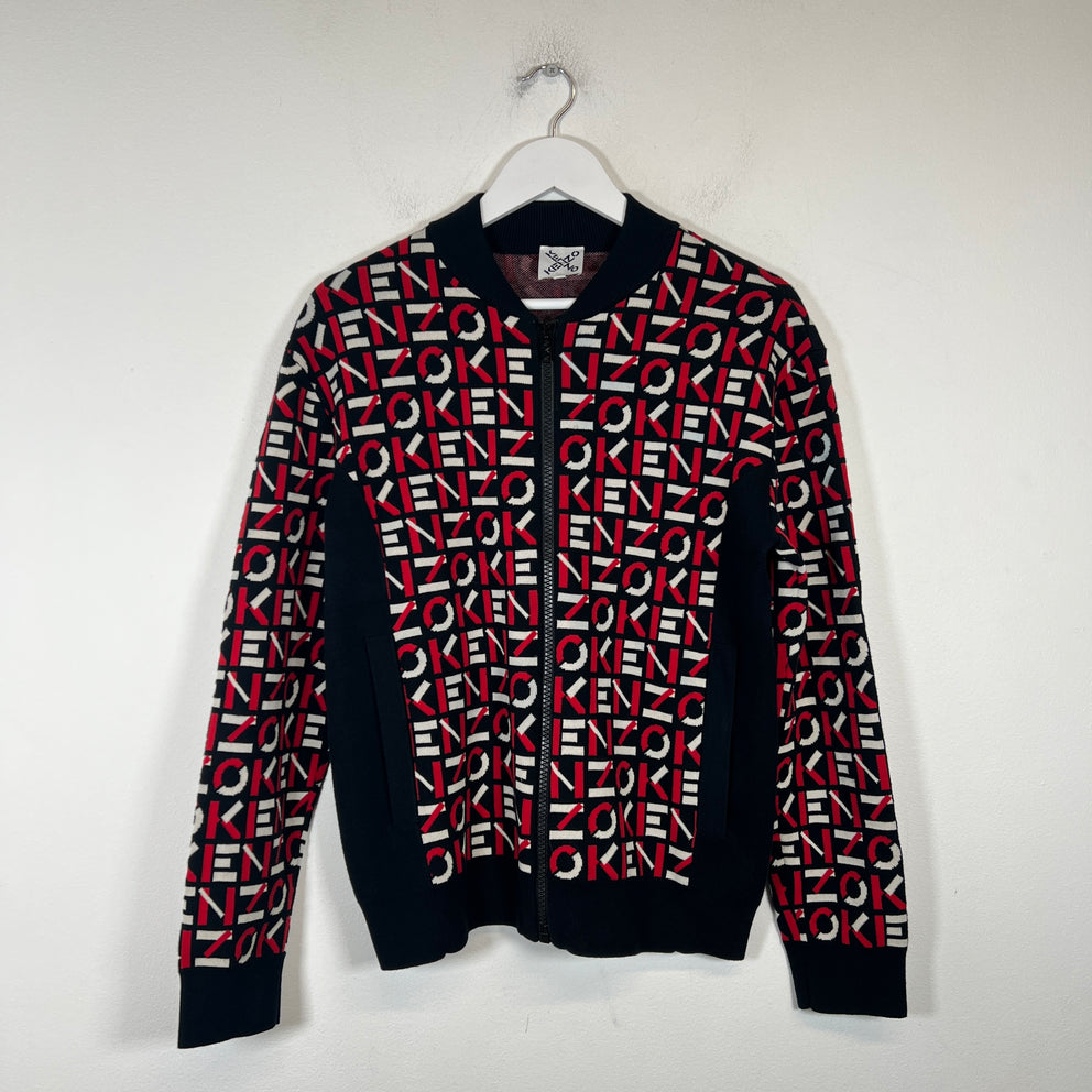 Kenzo Red/Black Monogram Knit Jacket Size S