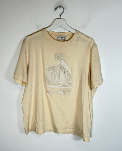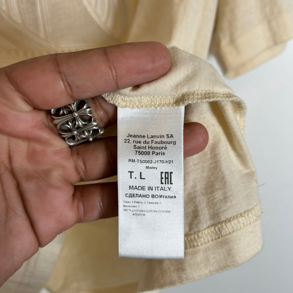 Lanvin x A Ma Maniere Cream Embroidered Logo T-Shirt Size L