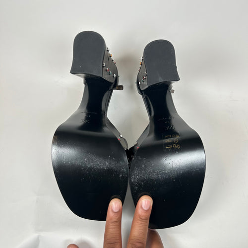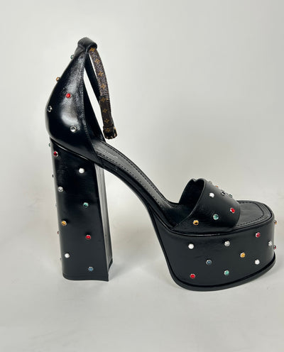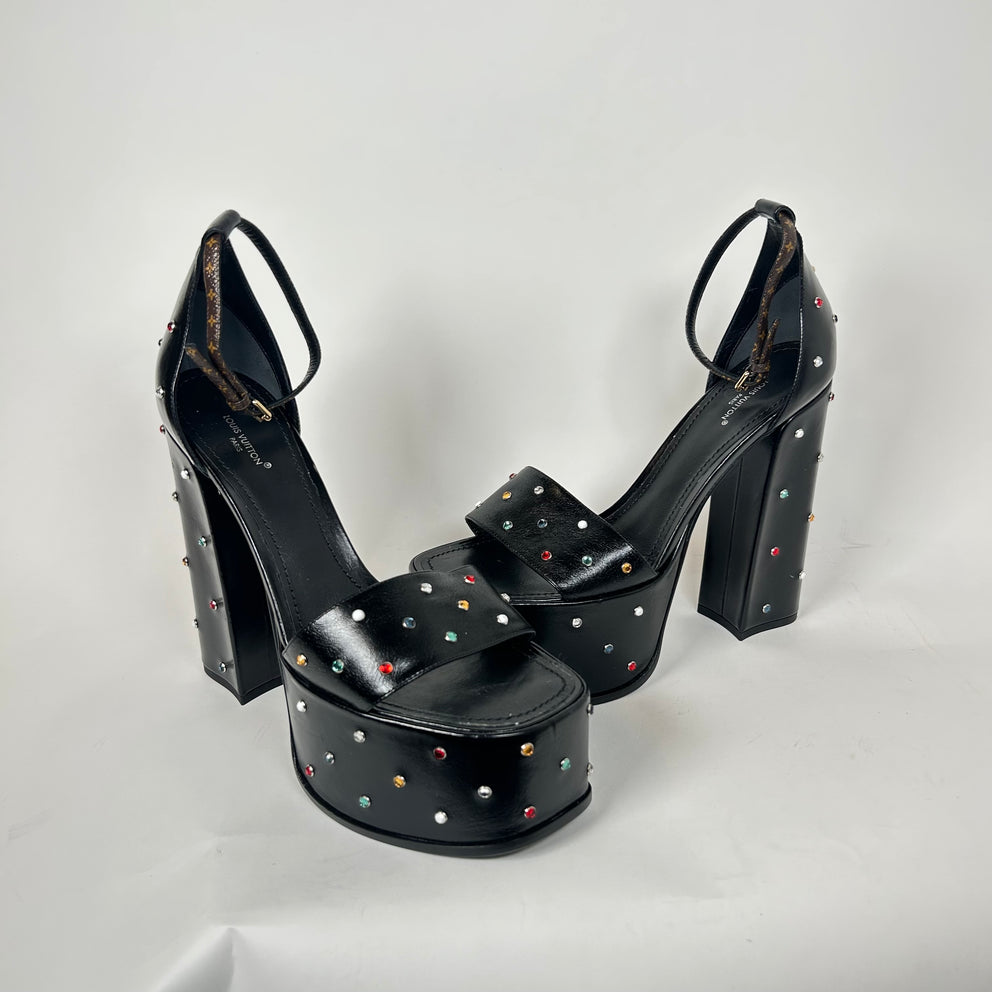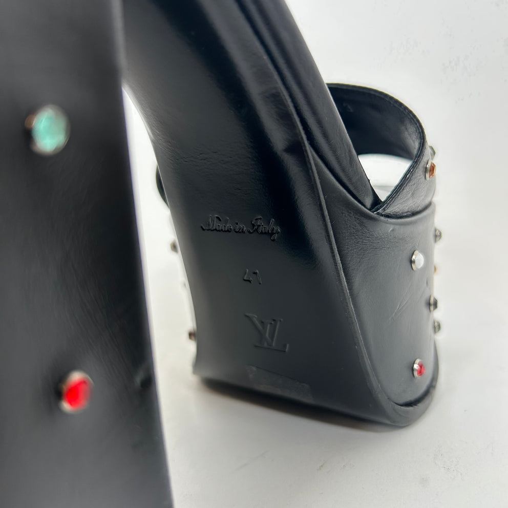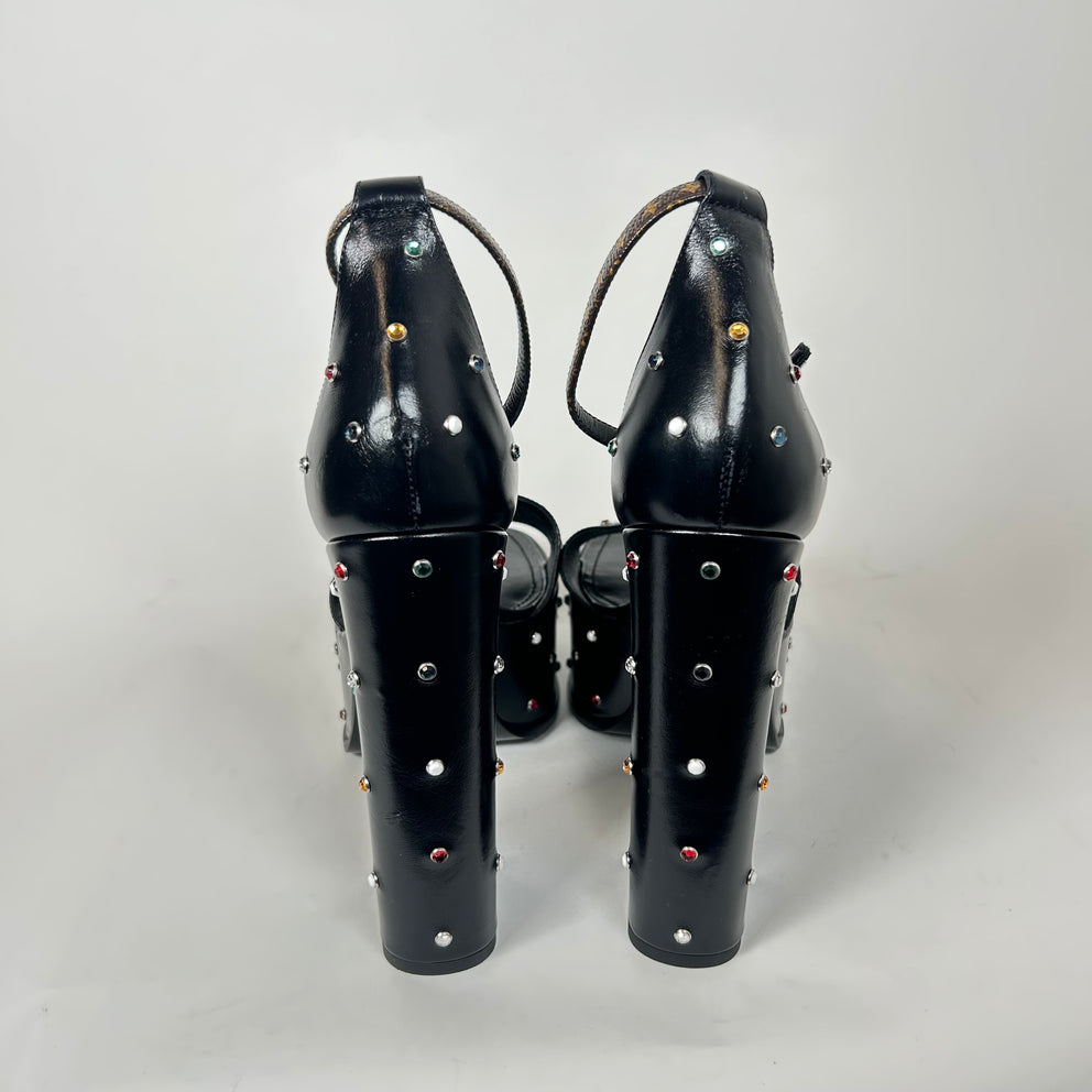 Louis Vuitton Black Leather Monogram Platform Heels Size 41