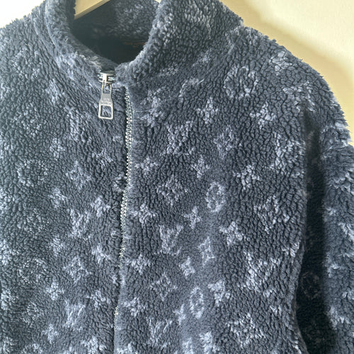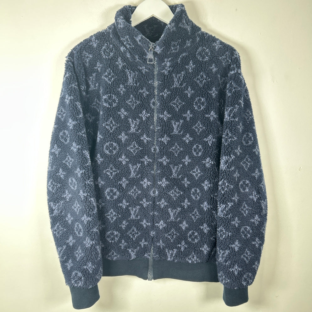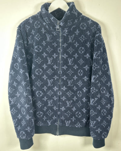 Louis Vuitton Navy Monogram Fleece Zip Up Jacket Size S