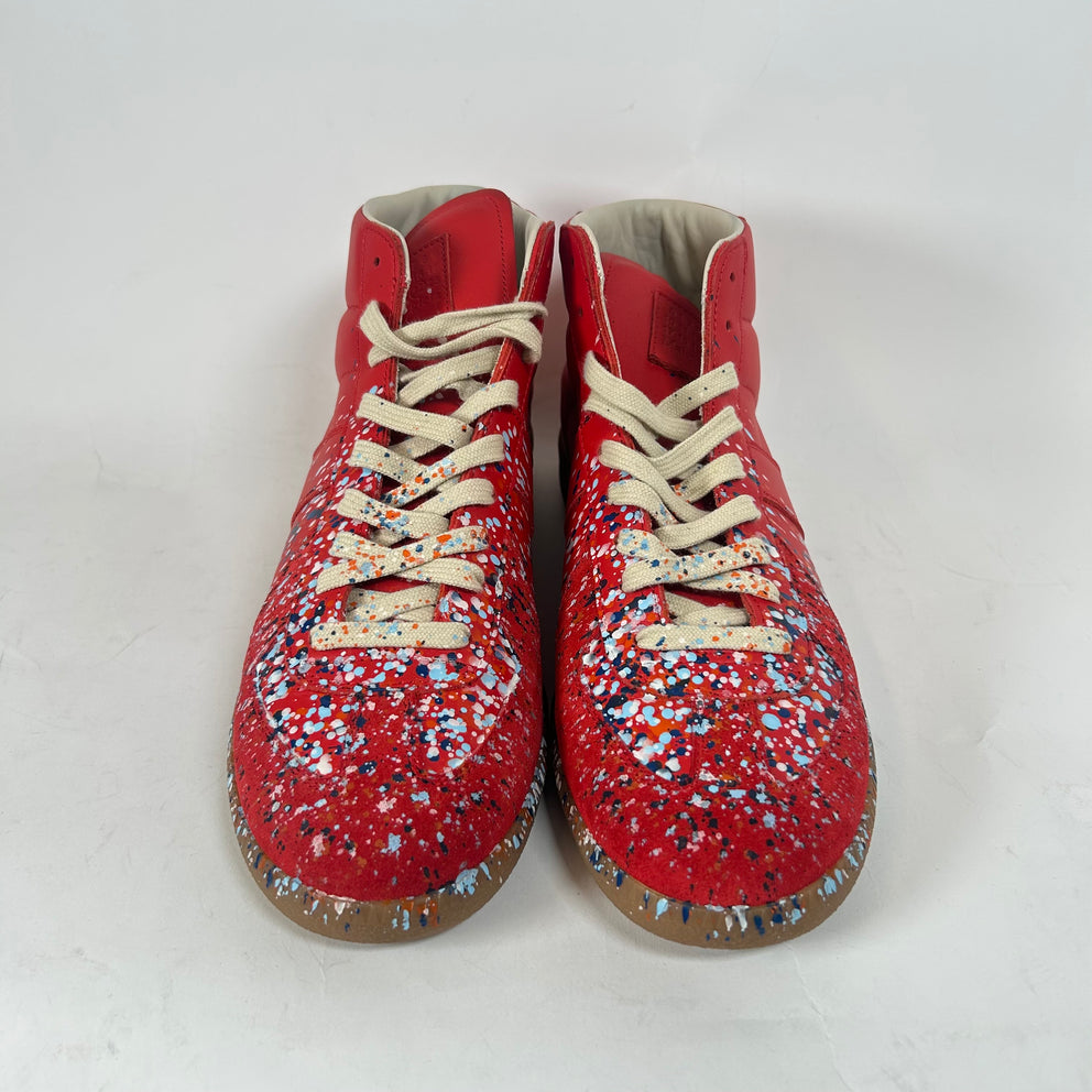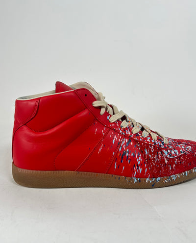 Maison Margiela Red Paint Splatter Mid-Top Sneaker Size 44