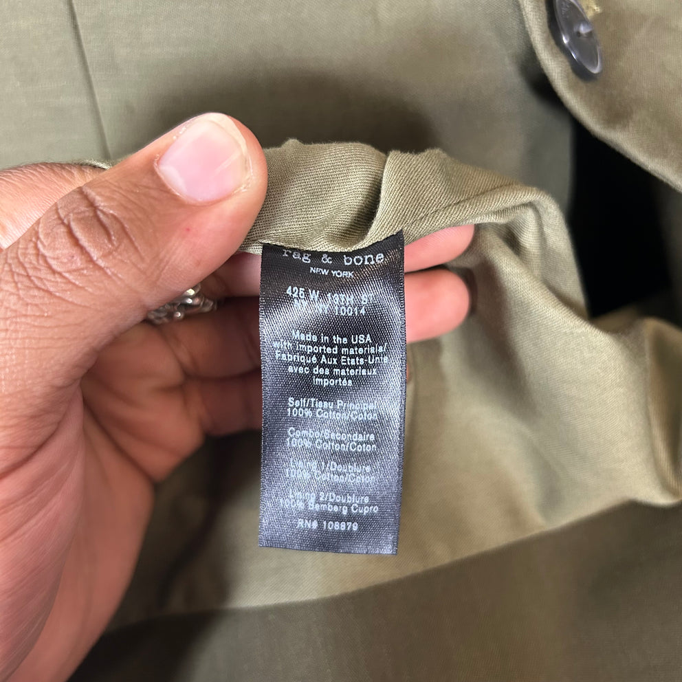 Rag & Bone Olive Cotton Trench Coat Size XS