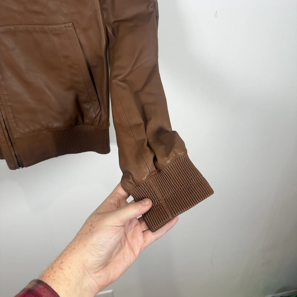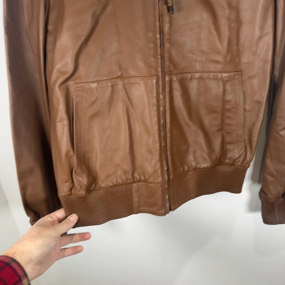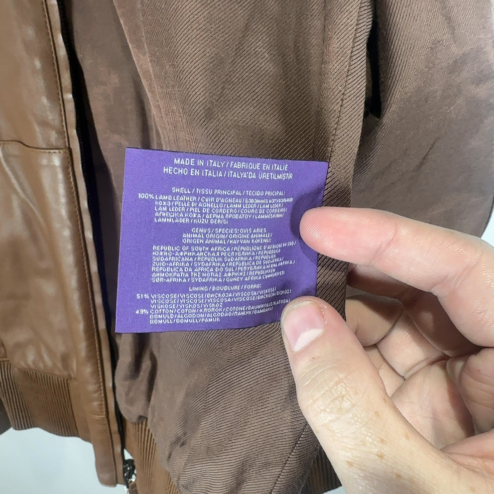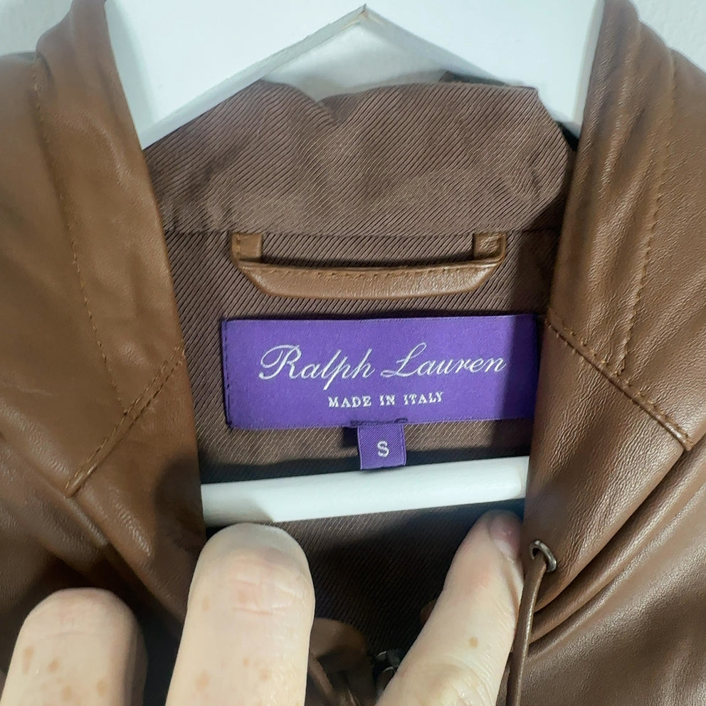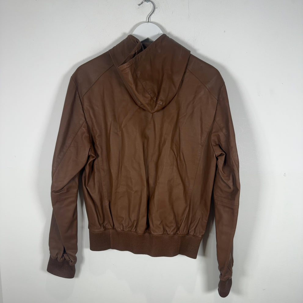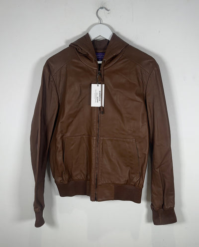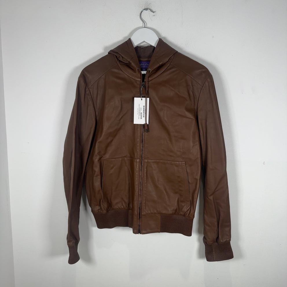 Ralph Lauren Purple Label Brown Leather Hooded Jacket Size S